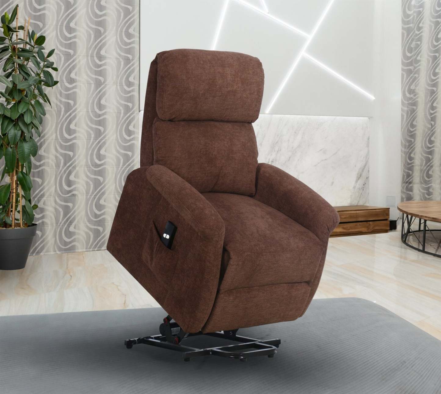 Ruben 32 Fauteuil basculeur à inclinaison électrique en tissu de chenille - brun chocolat