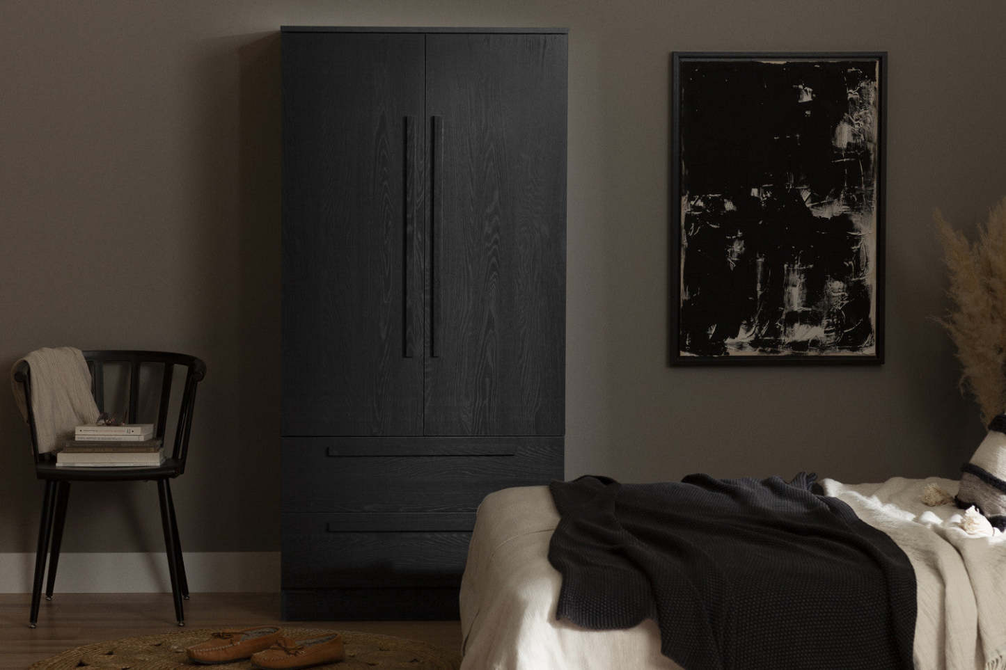 Armoire-penderie Acapella avec portes et tiroirs - Chêne noir | Acapella Armoire Penderie Avec Portes Et Tiroir - Chene Noir