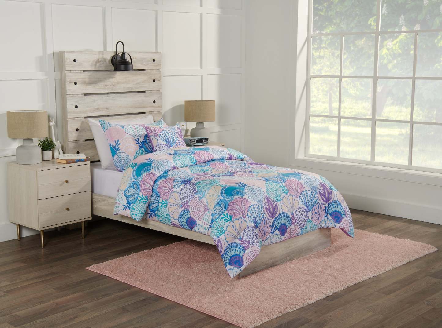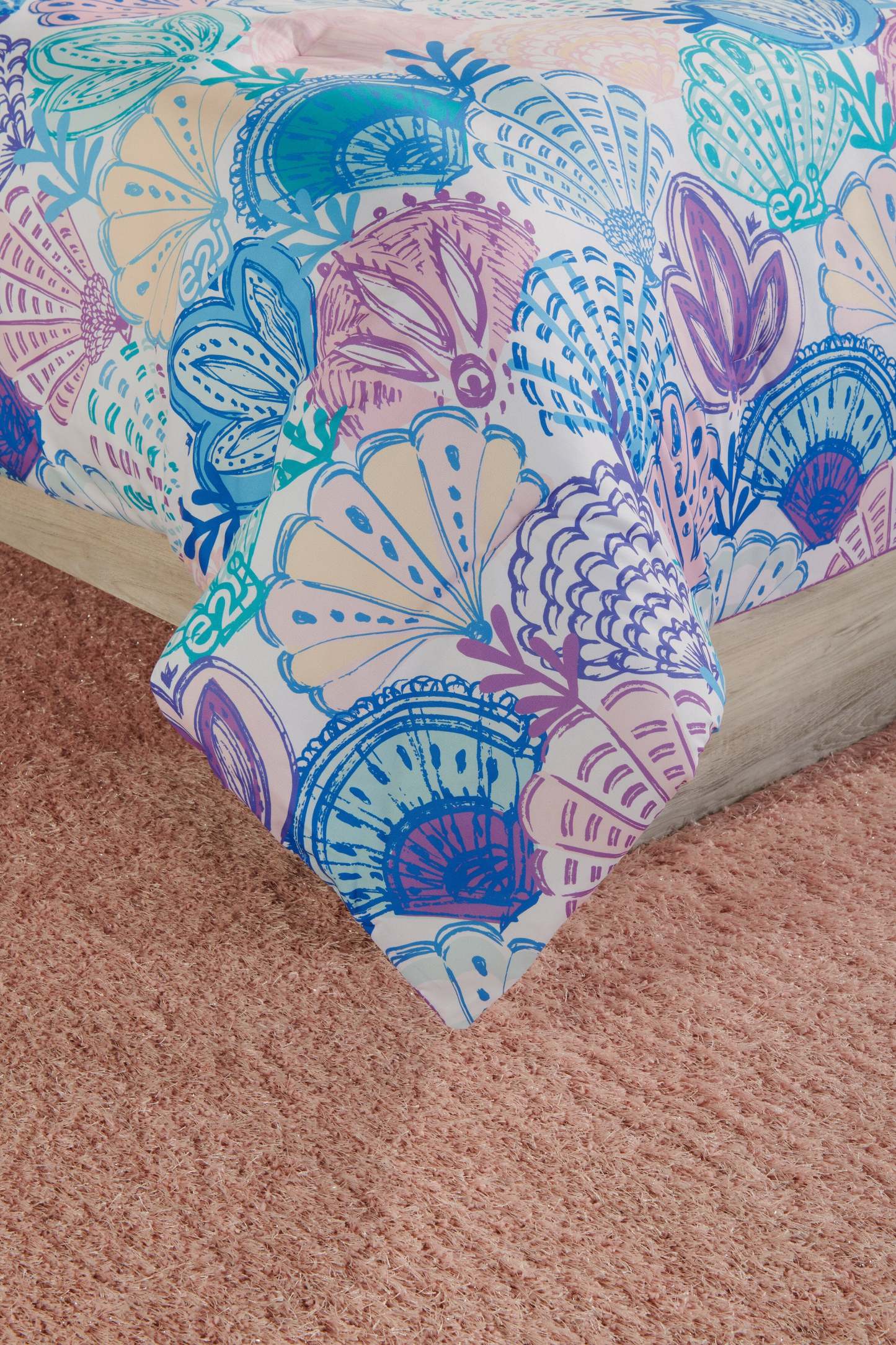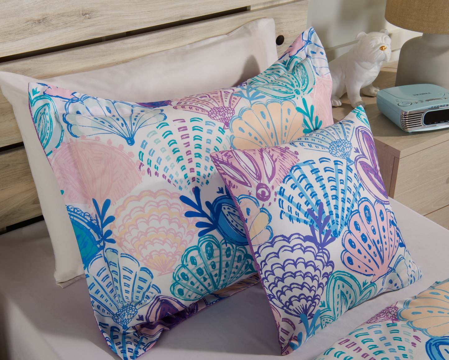 Plongez dans un univers frais et ludique avec cette parure de lit Coraline 4 pièces. La chambre de votre enfant se transformera en un havre de paix marin grâce à son motif coquillage multicolore éclatant, réversible pour révéler un motif vagues fantaisiste. Pratique et complète, cette parure comprend une couette, deux taies d'oreiller et un coussin décoratif, pour une installation facile et rapide. Que votre enfant adore la plage ou préfère se détendre au bord de la piscine, il appréciera sans aucun doute l'ambiance marine de cette parure de lit Coraline.