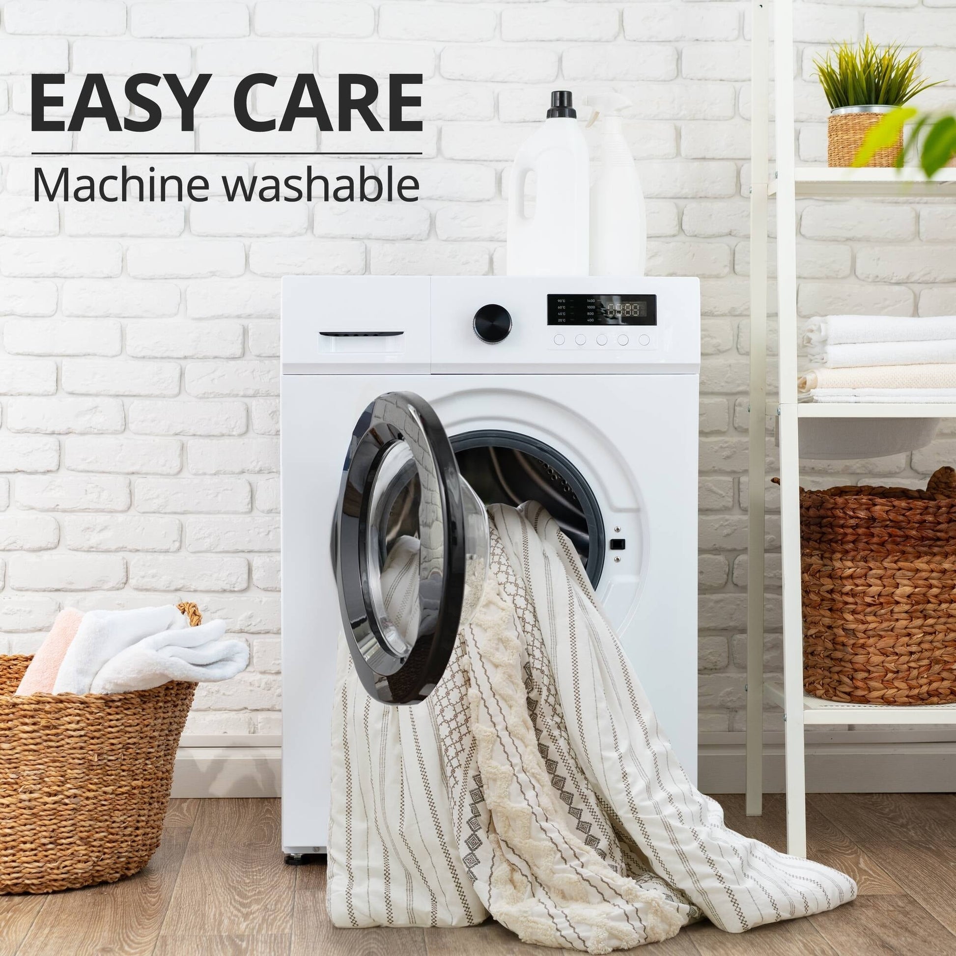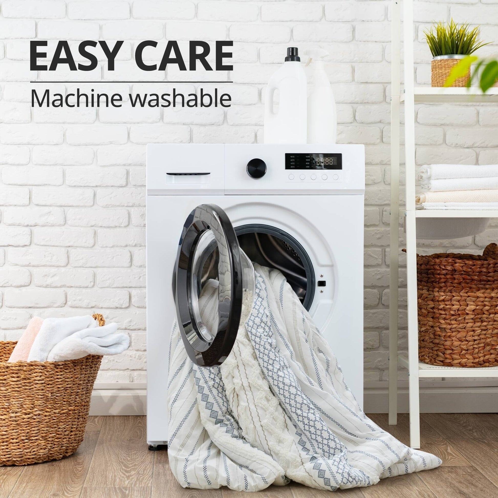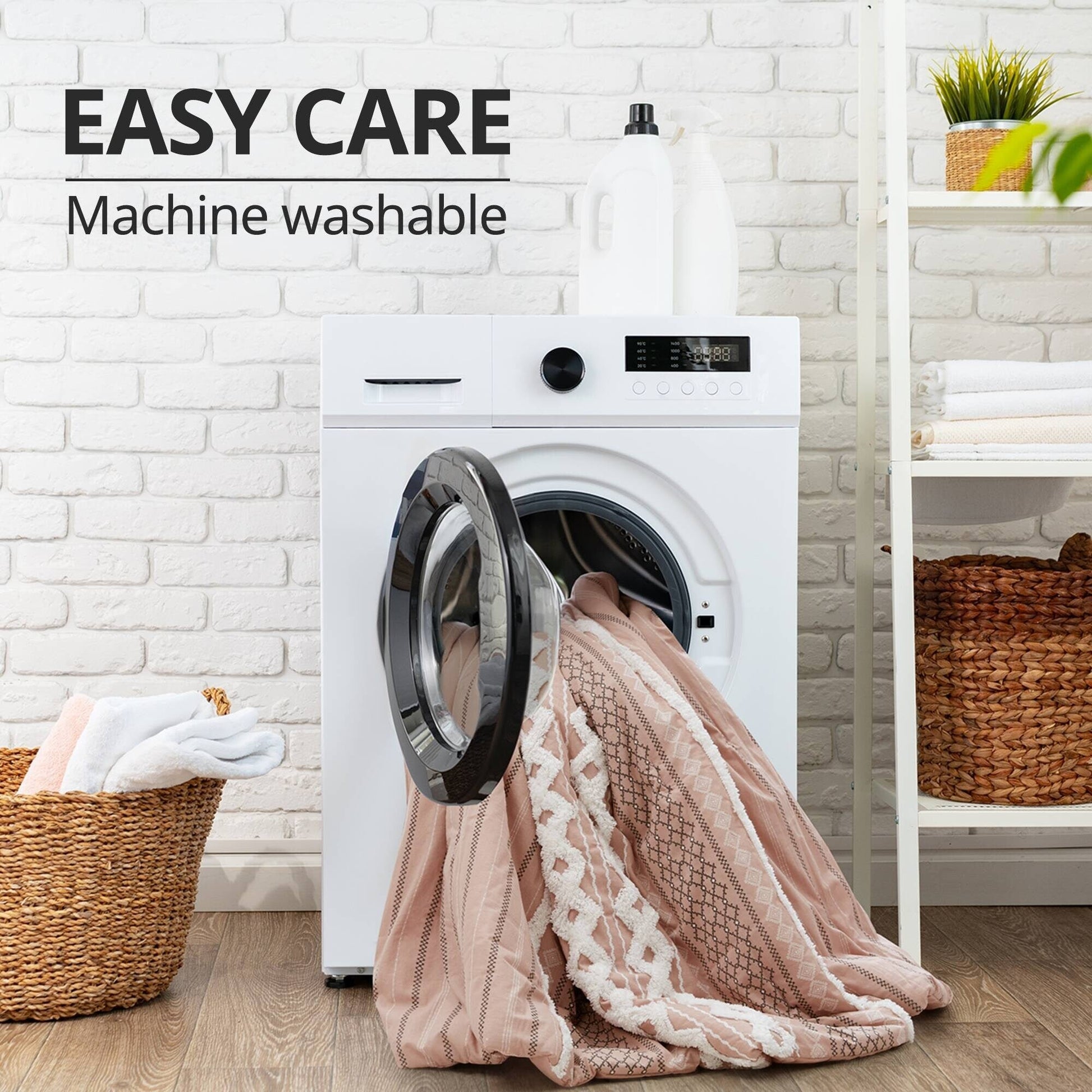 - Lavable en machine. En raison de la nature du tissu chenille, il est normal qu'il peluche légèrement au niveau des touffes lors des 3 ou 4 premiers lavages. Utilisez un rouleau antistatique pour éliminer les peluches (voir l'étiquette d'entretien).