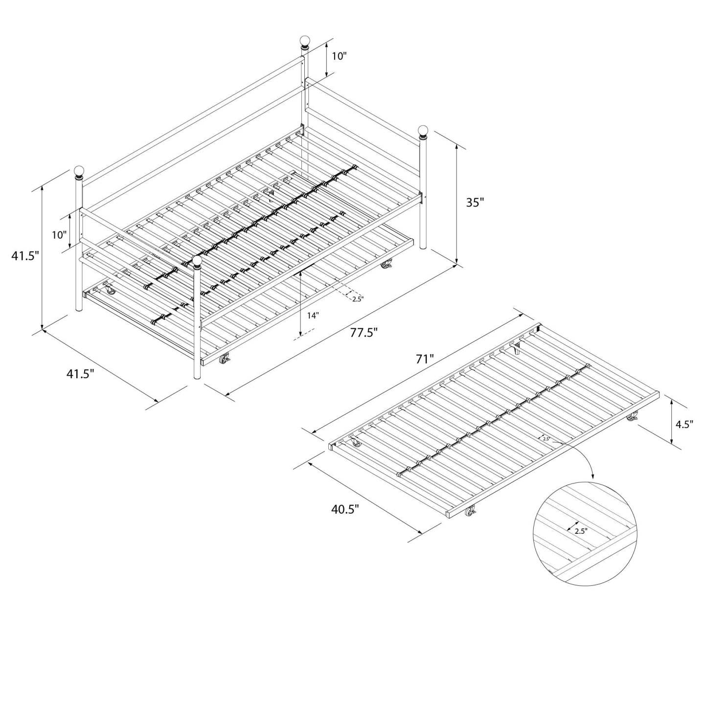 DHP Daybed and Trundle Metal Bed - Black|Lit de repos et lit gigogne DHP en métal - noirs|D18DRGJE