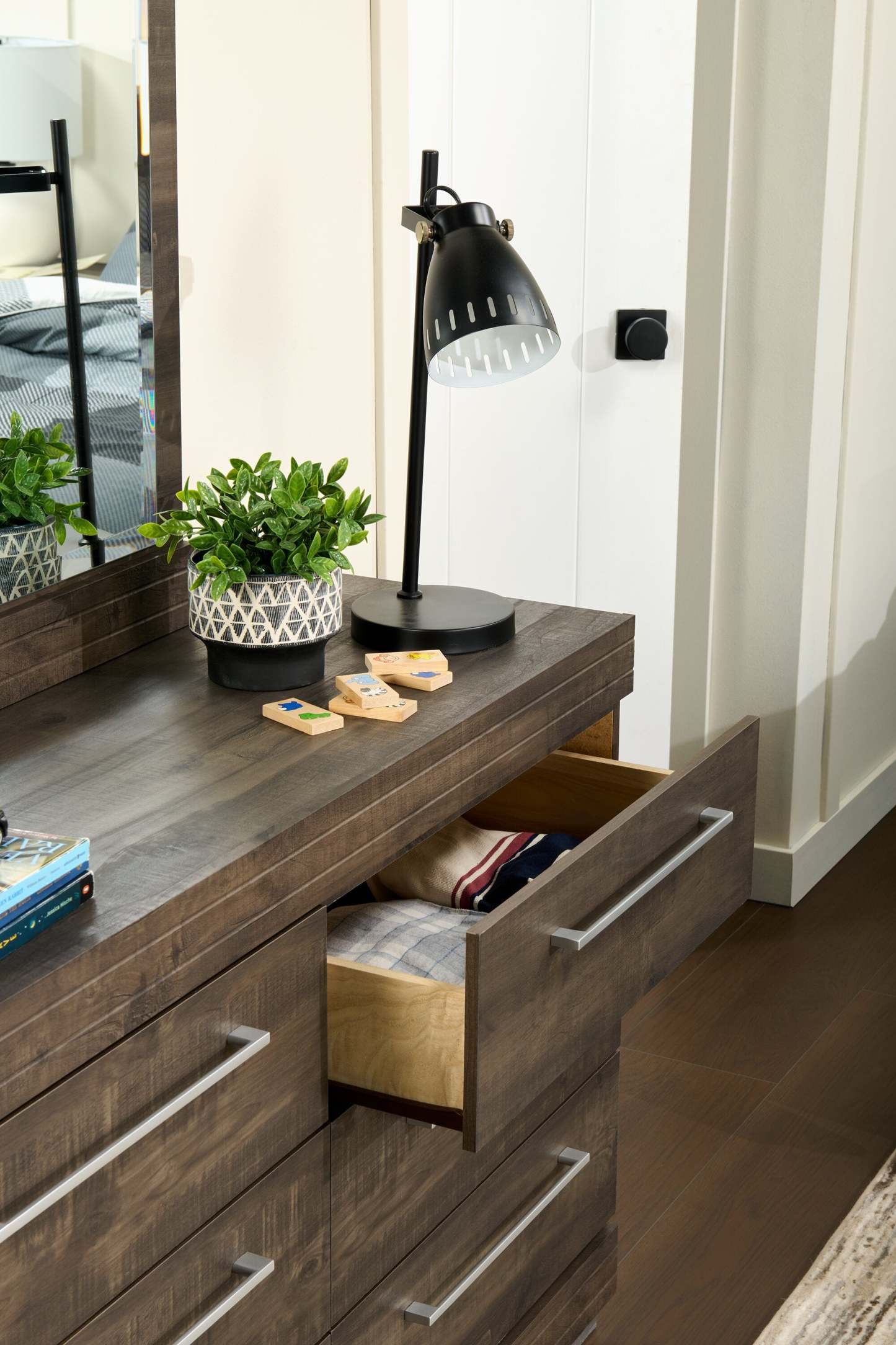Commode à 6 tiroirs pour chambre à coucher Riley, 49 L x 31 H, fabriquée au Canada - Gris | Commode de chambre à coucher Riley de 49 po (L) x 31 po (H) à 6 tiroirs, fabriquée au Canada - grise