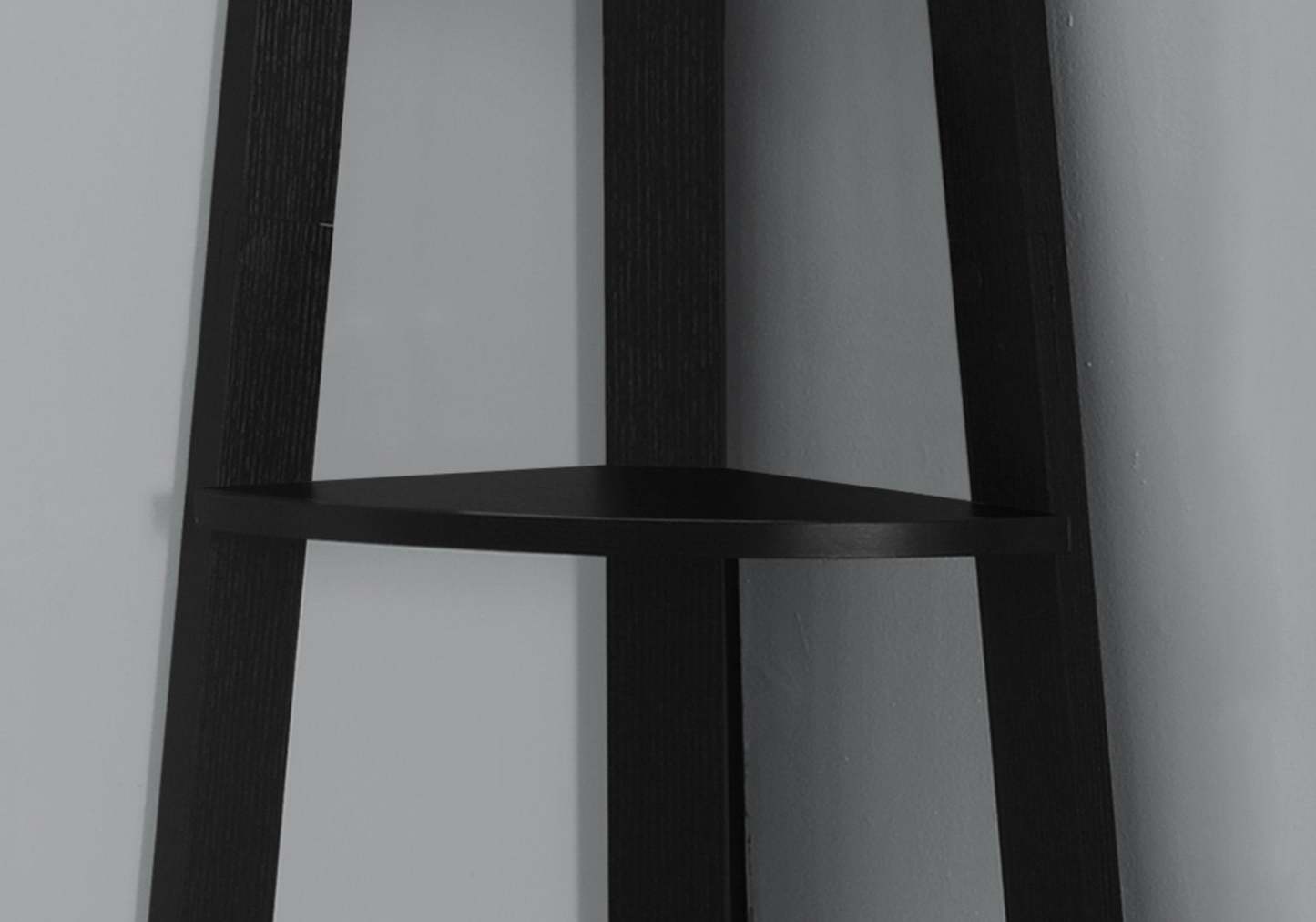 Installez facilement cette étagère et laissez-la faire son travail ! Regardez comme la bibliothèque s'intègre bien dans un coin de votre salon, bureau ou chambre, vous permettant d'exposer des livres et toutes sortes de décorations facilement. Profitez d'un endroit souvent difficile à aménager : le coin. Maximisez le rangement et l'affichage avec une pièce moderne qui vous aidera à utiliser tout l'espace disponible grâce à 5 étagères fixes de style plateau. Trois pieds en poutres robustes assurent l'intégrité structurale de cette étagère d'angle finie dans une belle couleur noire. Du matériel anti-basculement est inclus pour plus de stabilité.