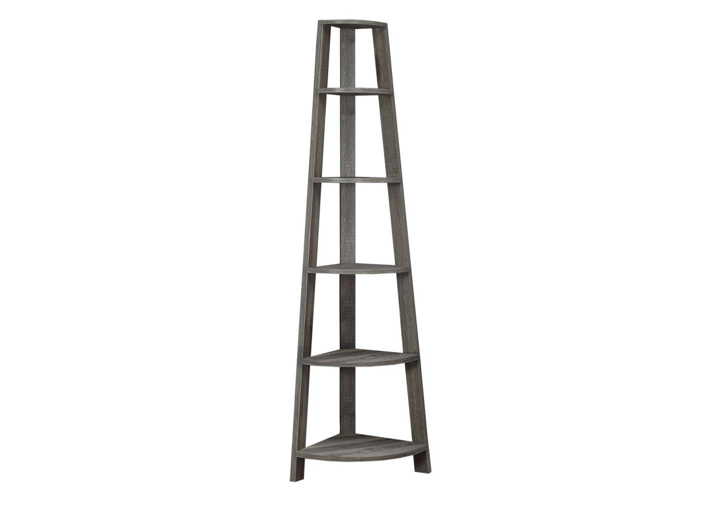 Installez facilement cette étagère et laissez-la faire son travail ! Regardez comme l'étagère s'intègre bien dans un coin de votre salon, bureau ou chambre, vous permettant d'exposer des livres et toutes sortes de décorations facilement. Profitez d'un endroit souvent difficile à aménager : le coin. Maximisez le rangement et l'affichage avec une pièce moderne qui vous aidera à utiliser tout l'espace disponible grâce à 5 étagères fixes de style plateau. Trois pieds en poutres robustes assurent l'intégrité structurelle de cette étagère d'angle dans une couleur taupe foncé avec une finition en texture bois. Du matériel anti-basculement est inclus pour une stabilité supplémentaire.