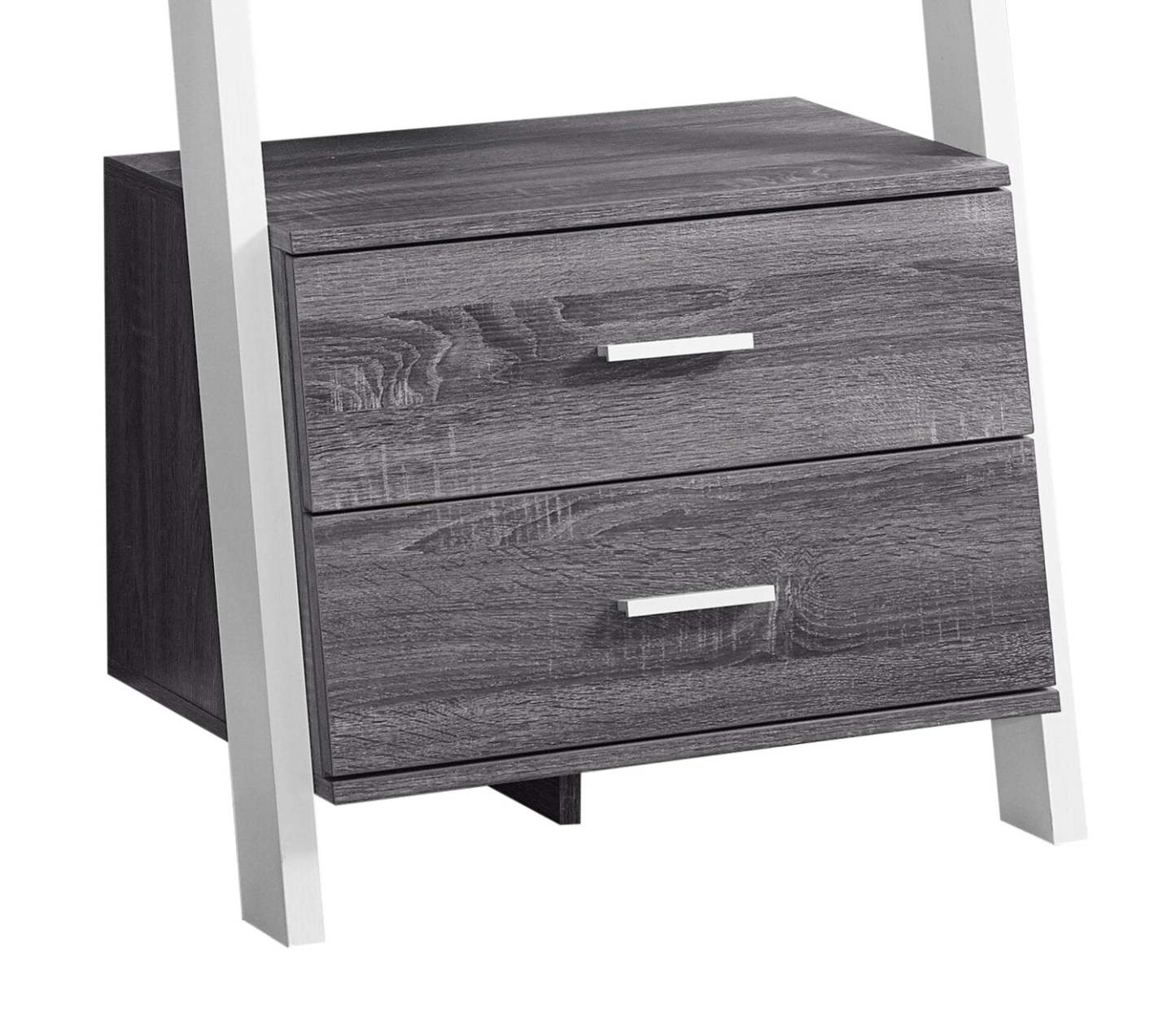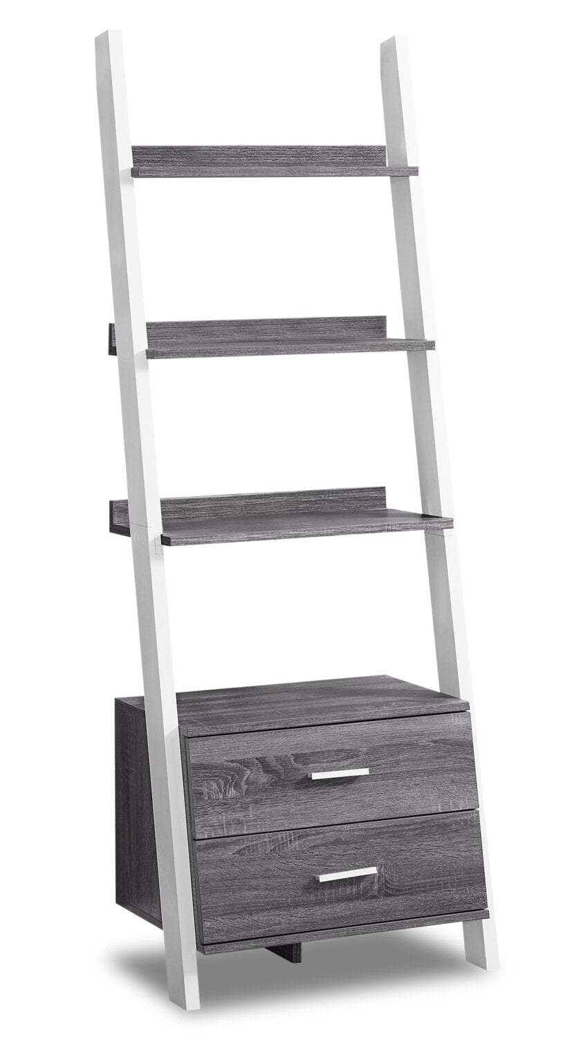 Bibliothèque échelle Ronan 25,5 avec étagères ouvertes et 2 tiroirs - Gris & Blanc|Bibliothèque échelle Ronan de 25,5 po à tablettes ouvertes et 2 tiroirs - grise et blanche