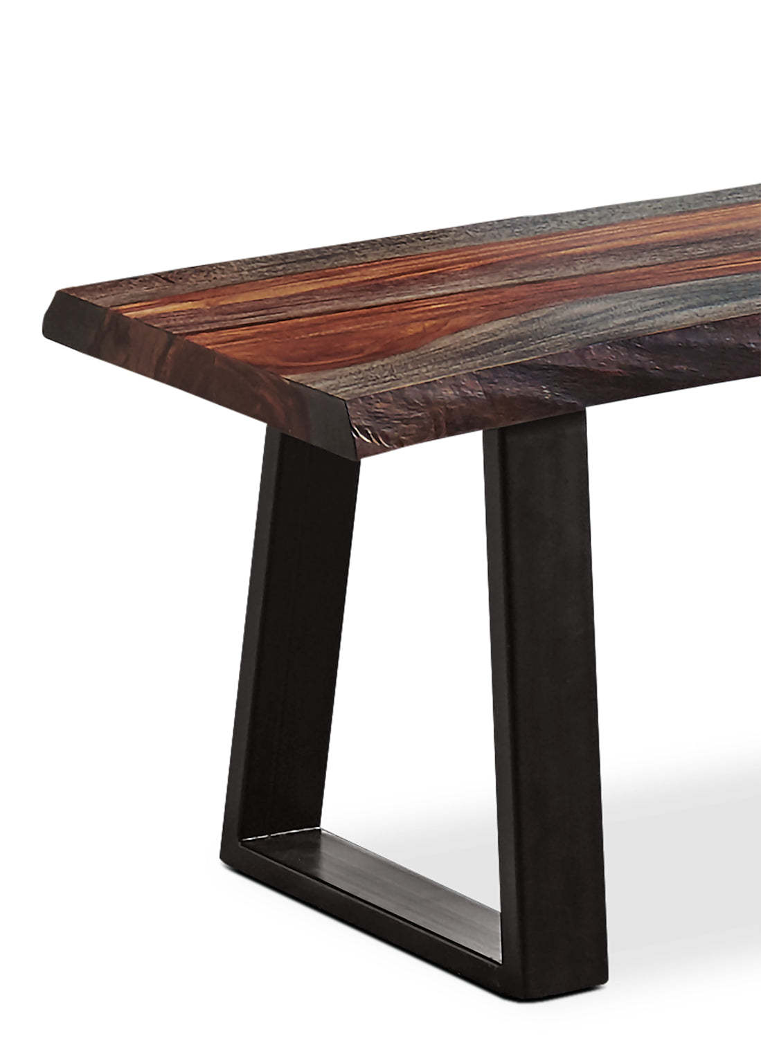 Banc de salle à manger Bowery, bois de Sheesham, métal, base trapézoïdale, 70 W - Marron | Banc de salle à manger Bowery de 70 po (L) en sheesham et métal avec base trapézoïde - brun