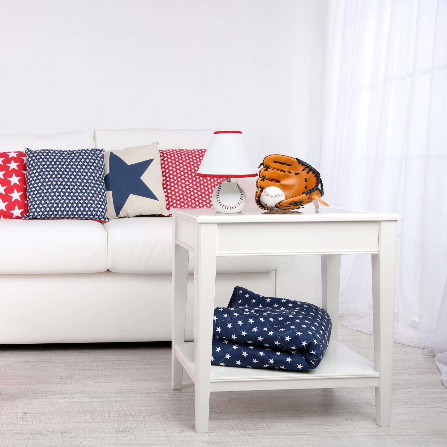 Avis aux amateurs de sport ! Que ce soit pour un adulte ou un enfant, cette lampe de table est idéale pour tous les fans de baseball qui souhaitent apporter une touche ludique à leur éclairage ! Un pied en céramique en forme de balle de baseball surmonte un abat-jour empire en tissu blanc à bordure rouge, aux couleurs de votre équipe préférée !