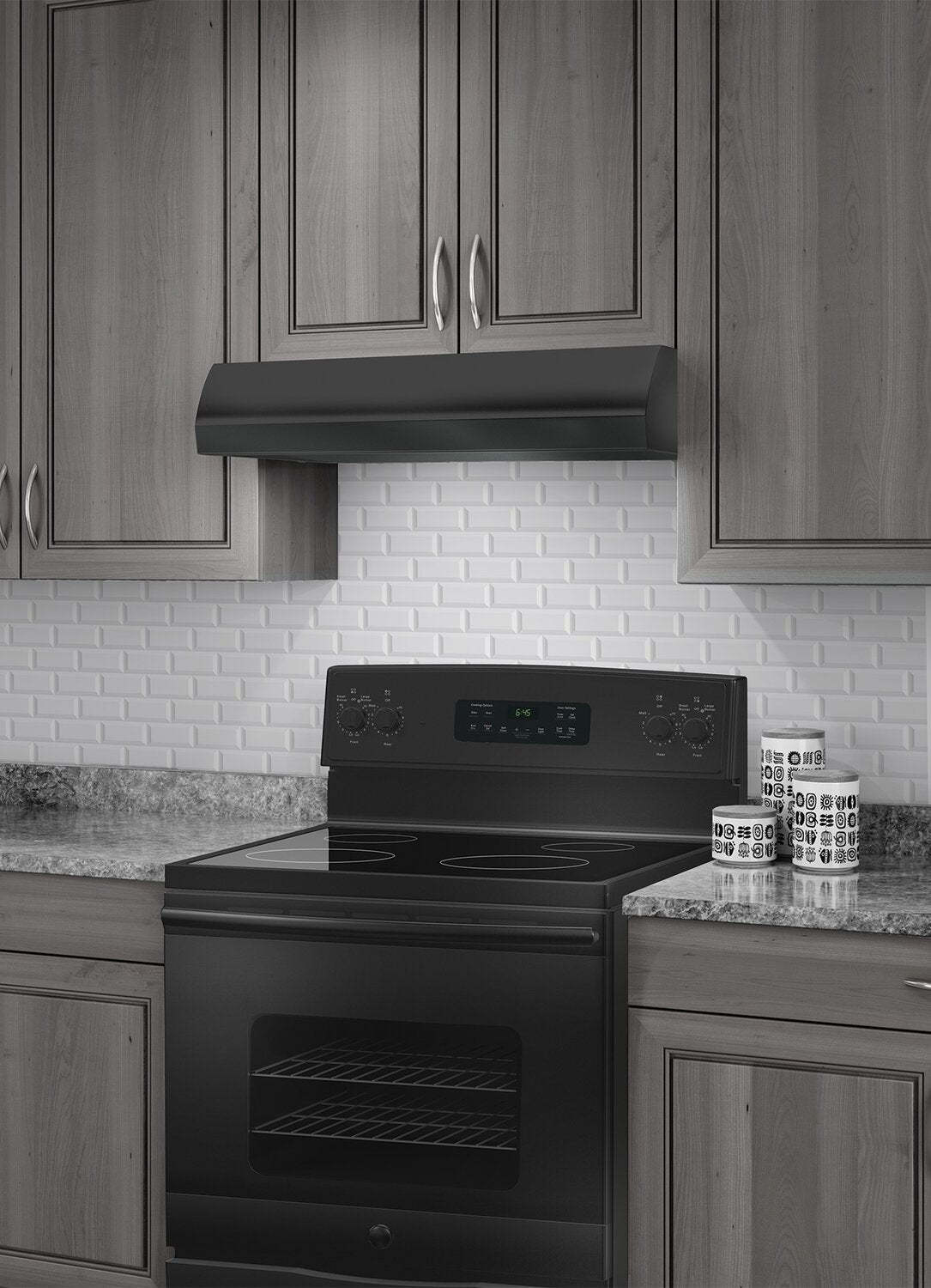 Cette hotte sous-meuble Broan est conçue pour purifier l'air de votre cuisine sans effort. Ses surfaces légèrement arrondies et son élégante finition noire lui confèrent un style à la fois traditionnel et moderne, tandis que son filtre lavable au lave-vaisselle et ses commandes dissimulées facilitent son entretien. Avec une puissance d'aspiration de 270 pieds cubes par minute (CFM) et deux vitesses de ventilation, fumées et odeurs sont éliminées en un clin d'œil. De plus, son faible niveau sonore de seulement deux sones à vitesse normale vous permet de discuter tranquillement avec vos invités pendant le fonctionnement de la hotte.