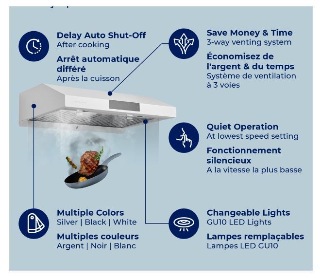 Hauslane 30 Under Cabinet Matte White Range Hood - UC-PS18WHT-30|Hotte de cuisinière sous l'armoire Hauslane de 30 po blanc mat - UC-PS18WHT-30