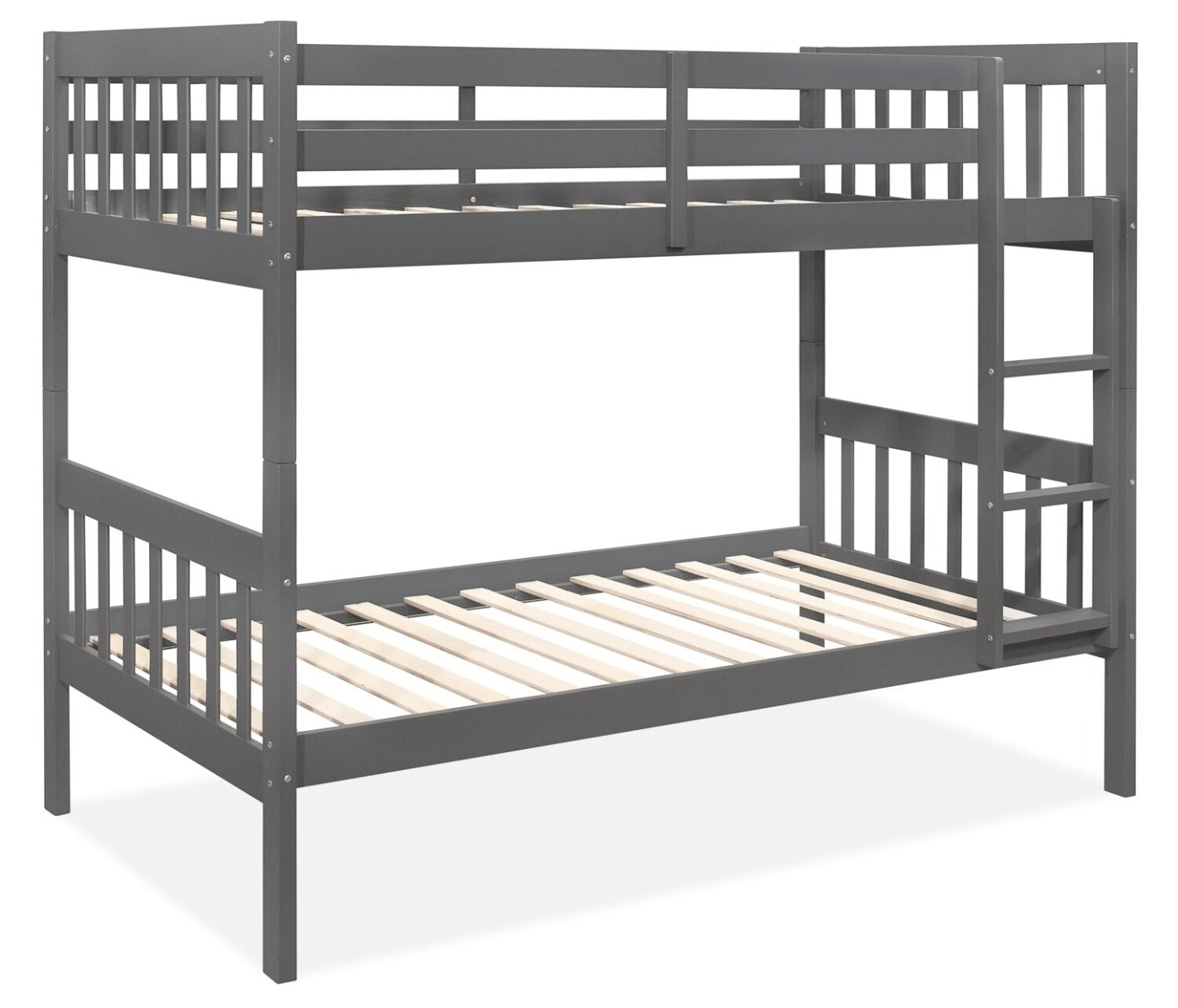 Lit superposé Miko avec échelle et garde-corps pour enfants, gris - Twin/Twin | Lits superposés Miko pour enfants avec échelle et garde-corps, gris - simple et simple