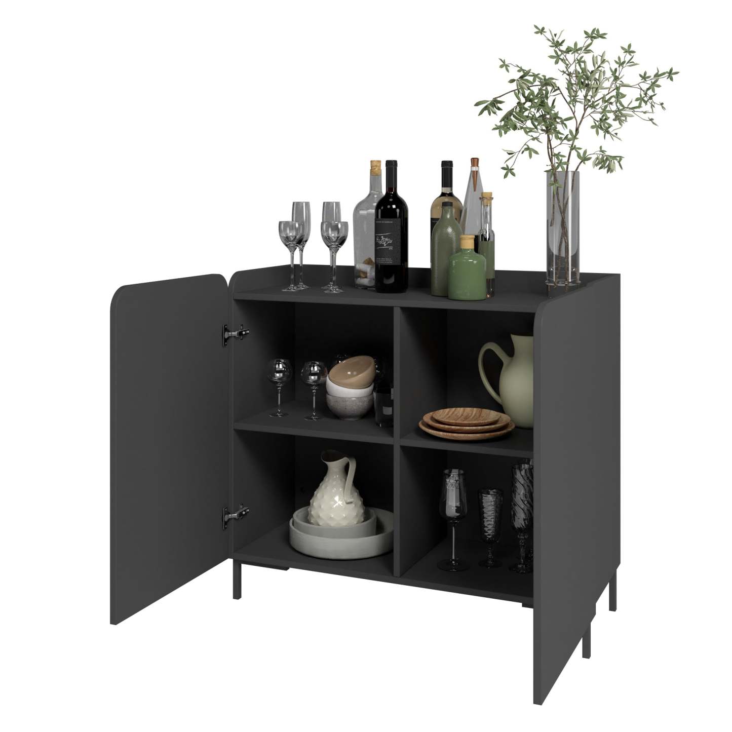 Avec son design épuré et minimaliste, le meuble d'appoint Bogardus, d'inspiration moderne du milieu du siècle, dégage une aura de sophistication contemporaine. Ses lignes nettes et sa finition monochrome lui confèrent une élégance intemporelle et discrète, ce qui en fait un choix idéal pour les espaces privilégiant une esthétique moderne et raffinée. Ce meuble est doté de deux portes arrondies à fermeture amortie et de quatre niches fixes.