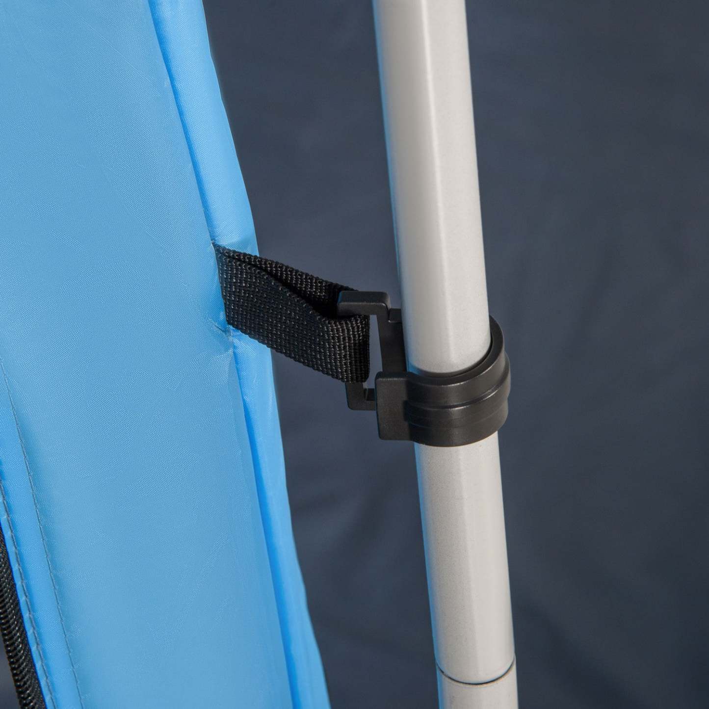 ● Les poteaux en fibre de verre flexibles et le cadre en acier robuste assurent la stabilité de cette tente familiale