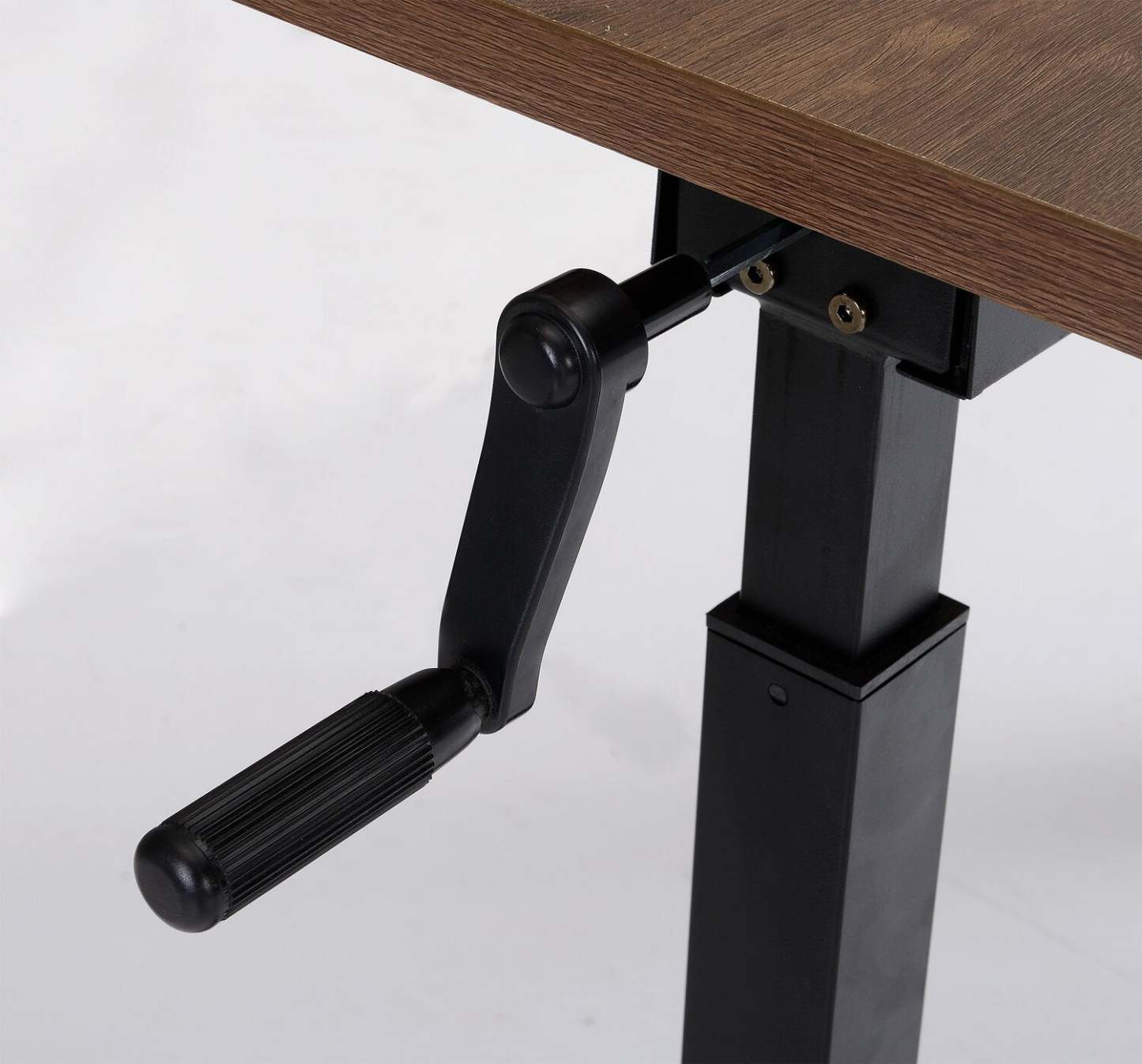 Travaillez plus efficacement avec le bureau Novah. Robuste et stable, cet espace de travail permet de passer facilement de la position assise à la position debout : il suffit de tourner la manivelle sous le plateau pour régler la hauteur de 45 cm. Son plateau stratifié arbore un veinage de bois brun profond qui, associé à des pieds en métal noir, lui confère une allure résolument moderne et luxueuse. De plus, les pieds revêtus de peinture en poudre assurent une excellente stabilité, et des patins antidérapants les empêchent de glisser sur les sols durs. Optimisez votre productivité et votre confort avec le bureau Novah.