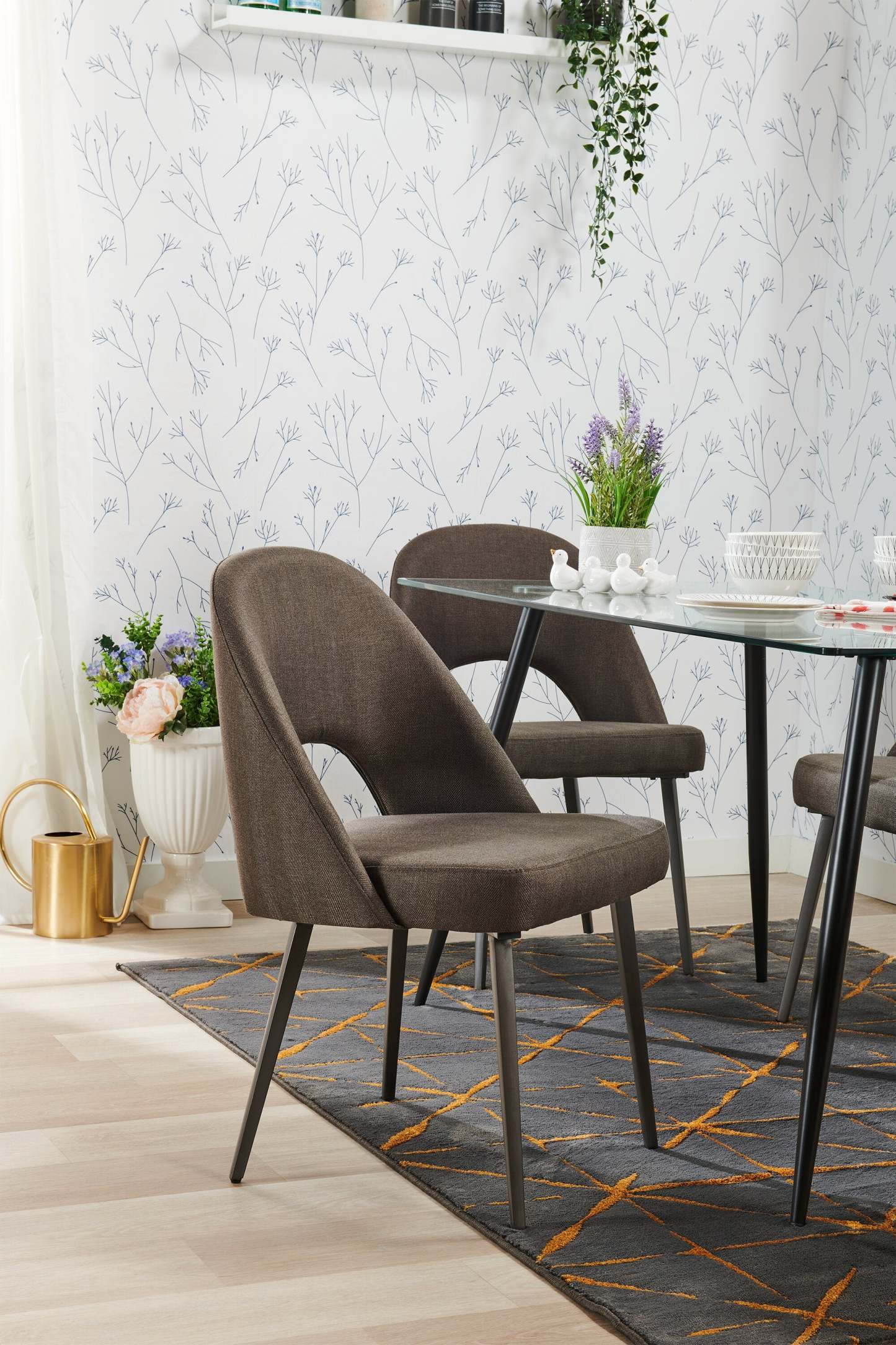 Chaise de salle à manger Elijah avec tissu d'apparence lin, métal - gris | Chaise de salle à manger Elijah en tissu d'apparence lin et en métal - grise