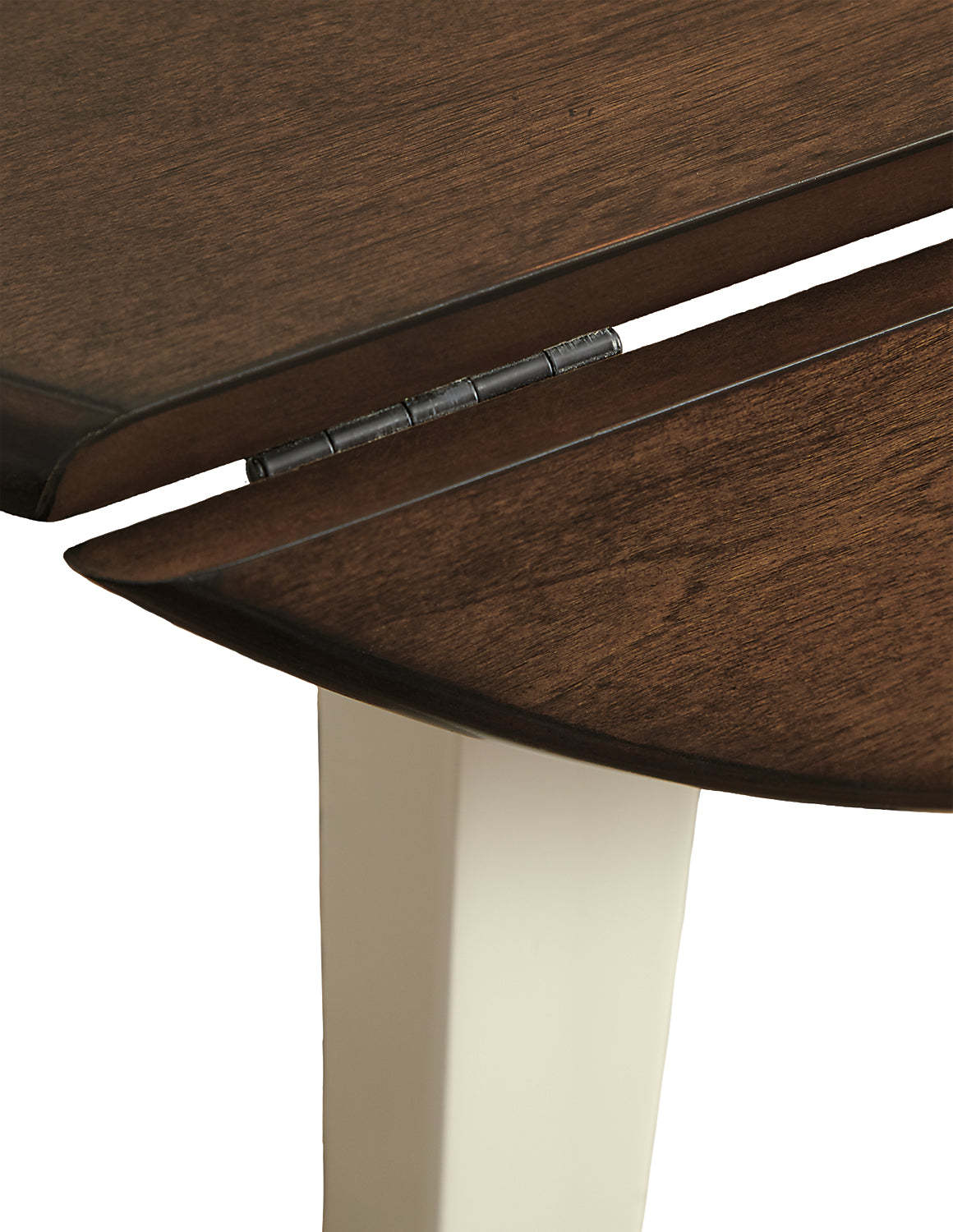 Nul besoin d'être à la campagne pour apprécier le charme rustique de cette table à manger Woodanville à abattants. Sa finition bicolore crée un style épuré et élégant qui illuminera votre cuisine ou votre salle à manger. Si l'espace est limité, vous apprécierez son design à abattants. Le plateau rond se replie sur deux côtés pour un gain de place optimal, vous permettant de glisser l'ensemble contre un mur et de libérer ainsi de l'espace. Complétez votre coin repas avec les chaises à dossier échelle assorties de la même collection (vendues séparément).