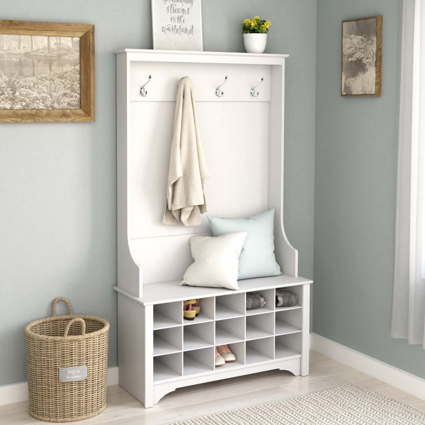 Arbre d'entrée avec rangement pour chaussures - Blanc|Portemanteau avec rangement pour chaussures - blanc