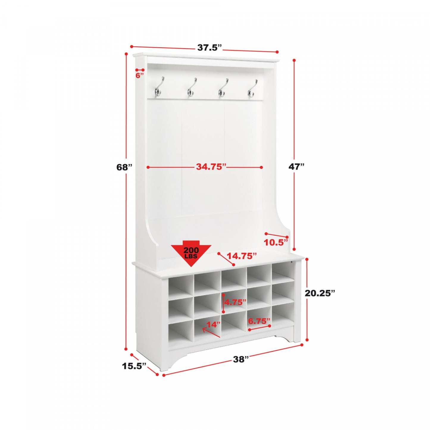 Apportez style et organisation à l'une des pièces les plus fréquentées de la maison grâce au porte-manteau Prepac Wide avec rangement à chaussures. Son design compact vous permet de ranger tous vos effets personnels dans une seule pièce. Accrochez vos vestes, chapeaux, sacs à main et foulards aux 4 robustes patères doubles et rangez vos chaussures dans les 15 compartiments pratiques, qui servent également de banc. Ce meuble est indispensable pour votre entrée et est fabriqué au Canada. Livré prêt à assembler, il bénéficie d'une garantie de 5 ans sur les pièces.