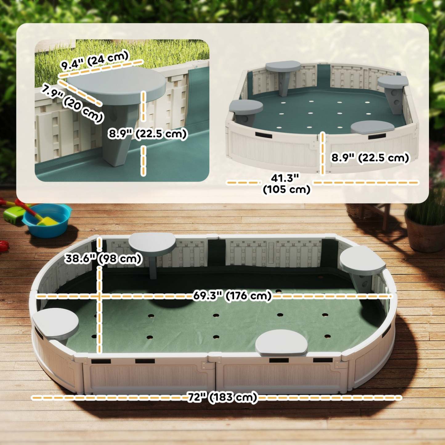 Outsunny Bac À Sable Pour Enfants Avec Couvercle, Bac À Sable Pour L'extérieur Avec Siège D'angle, Montage Facile, Station De Sable À Jouer