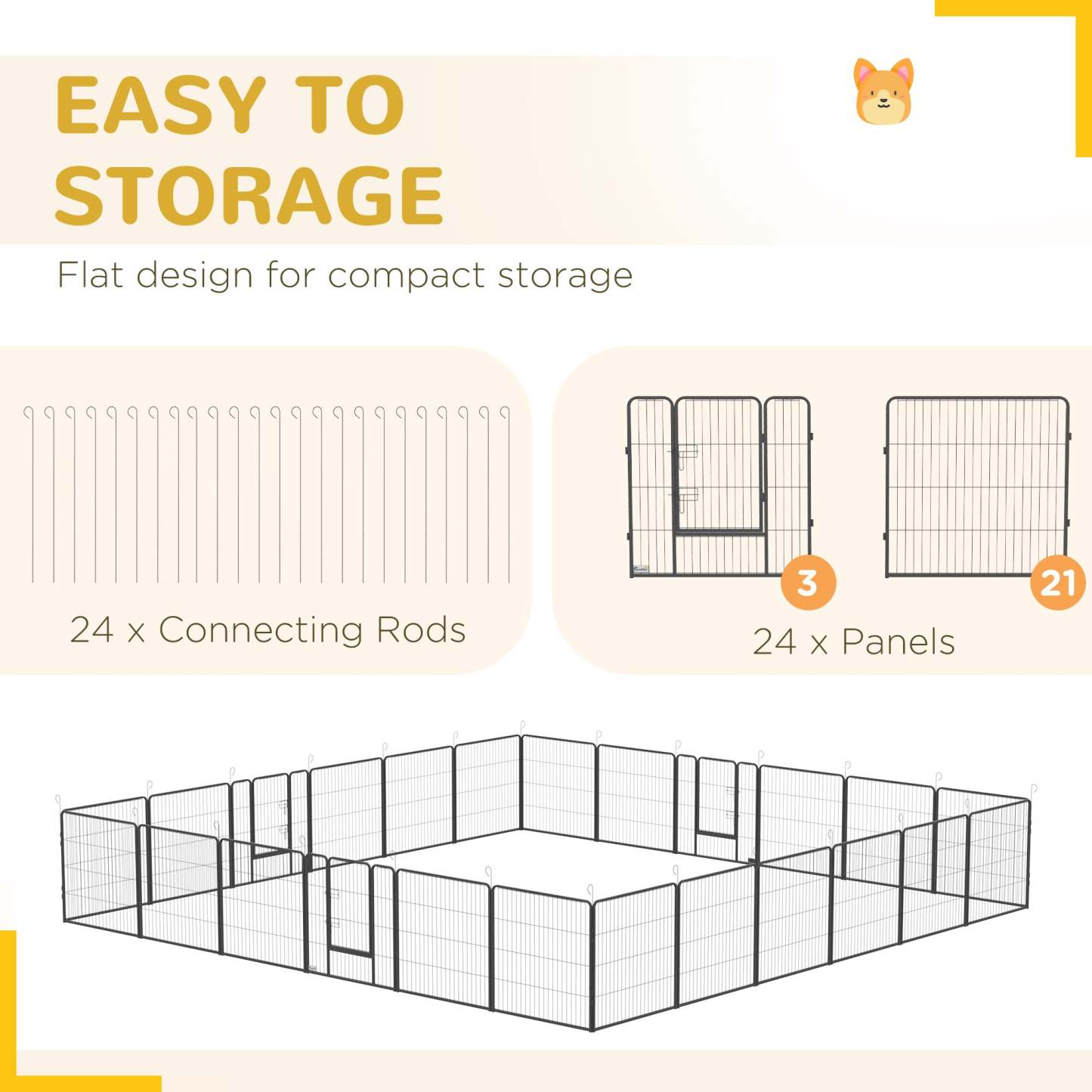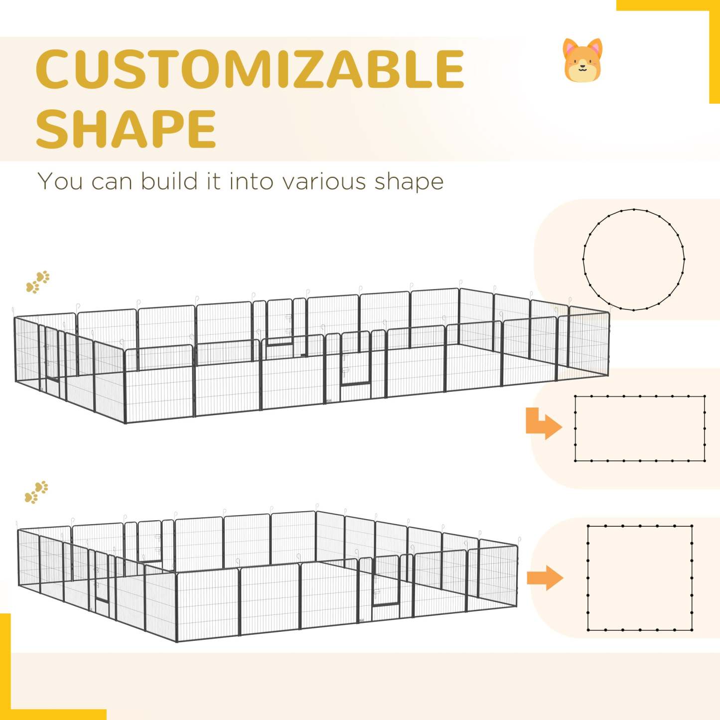 Pawhut Parc Pour Chien Très Résistant, Panneaux Métalliques Pour Chiots, Design DIY, Extérieur, Pour Petits Intérieur A|Pawhut Heavy Duty Dog Playpen, 24 Panneaux De 31.5 De Hauteur, Parc D'exercice Pour Chiot E