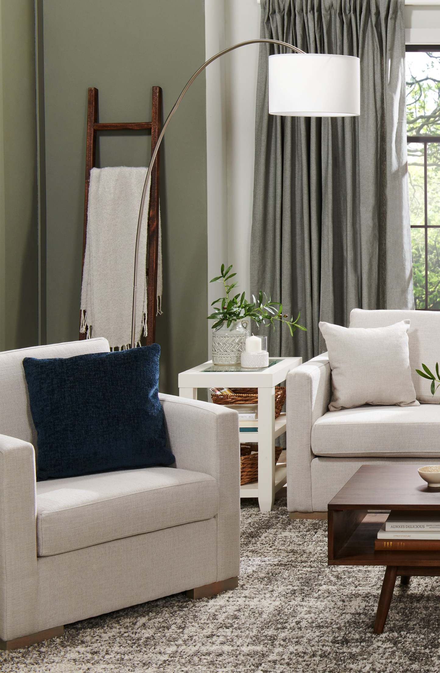 78 Lampadaire Arc en Acier Brossé avec Abat-Jour en Lin|Lampe à pied arquée de 78 po acier brossé avec abat-jour en lin
