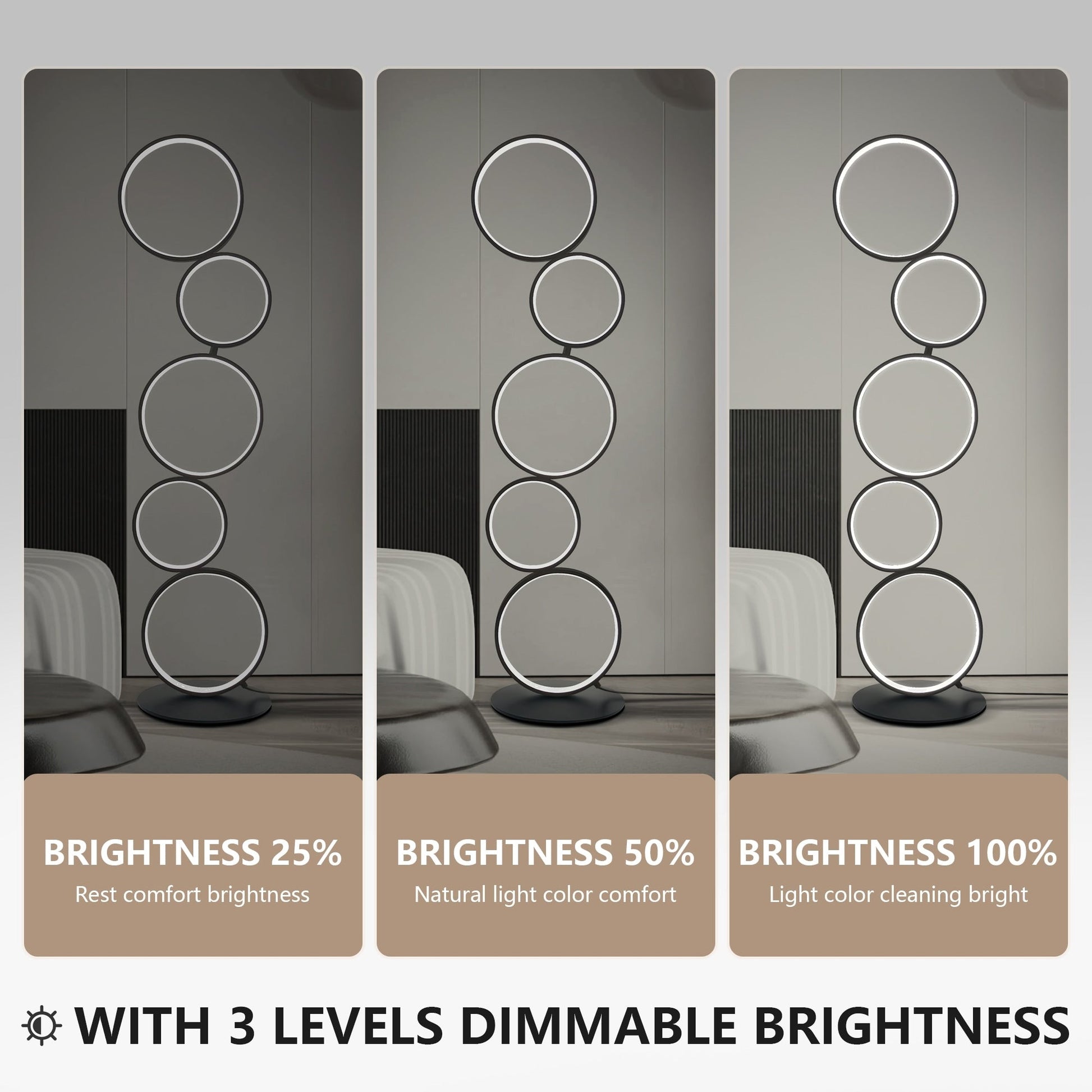 Lampadaire moderne à LED à intensité variable, lampe d'angle lumineuse à 3 niveaux avec 5 anneaux pour salon