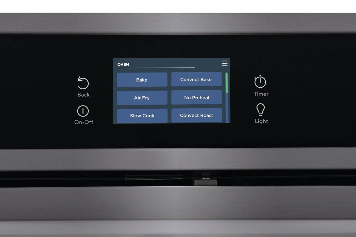 Profitez d'une pléthore de modes de cuisson pour créer vos plats préférés avec ce four mural à convection de Frigidaire Gallery. Les modes friture, vapeur, sous vide et cuisson lente vous permettent de préparer une variété de plats délicieux avec facilité. De plus, l'option sans préchauffage prépare le dîner en un rien de temps pour ceux qui ont un mode de vie chargé. Le panneau de contrôle tactile en couleur est facile à utiliser, tandis que l'extérieur en acier inoxydable noir résistant aux traces et la grande fenêtre en verre noir créent un look élégant qui ajoute une touche de modernité à toute cuisine.