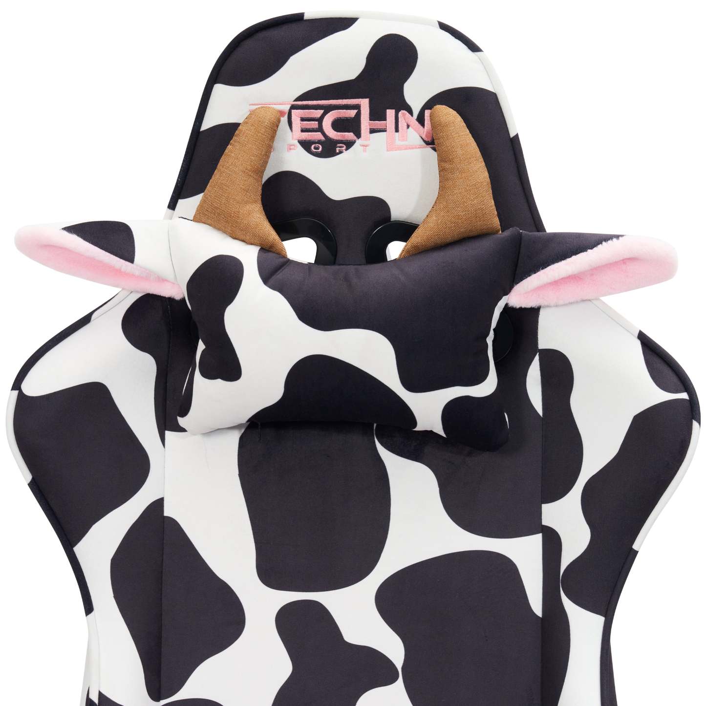 Dites adieu aux autres chaises gaming ! La nouvelle chaise gaming TS85 Cow Print LUXX Series est exactement ce qu'il vous faut pour vous démarquer. Son revêtement doux au toucher, semblable à du velours, son assise en mousse à mémoire de forme haute qualité, son appui-tête vache avec oreilles roses en peluche et cornes brunes, ainsi que son coussin lombaire double face en font un accessoire indispensable. Offrant un confort, un style et des performances ultimes, cette chaise gaming est également équipée d'accoudoirs réglables en 2D, d'un réglage pneumatique de la hauteur d'assise, d'un mécanisme d'inclinaison jusqu'à 150 degrés et bien plus encore ! Supportant un poids maximal de 113 kg (250 lb), elle est garantie 2 ans.