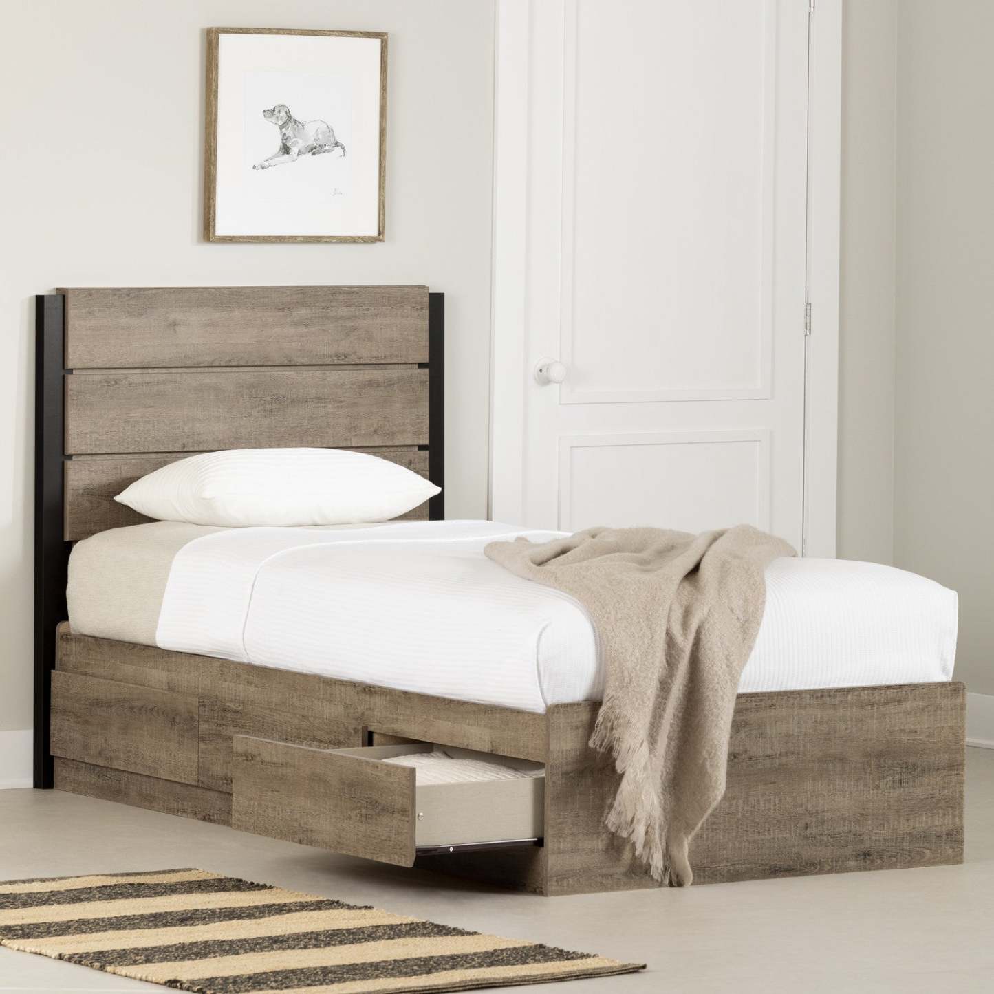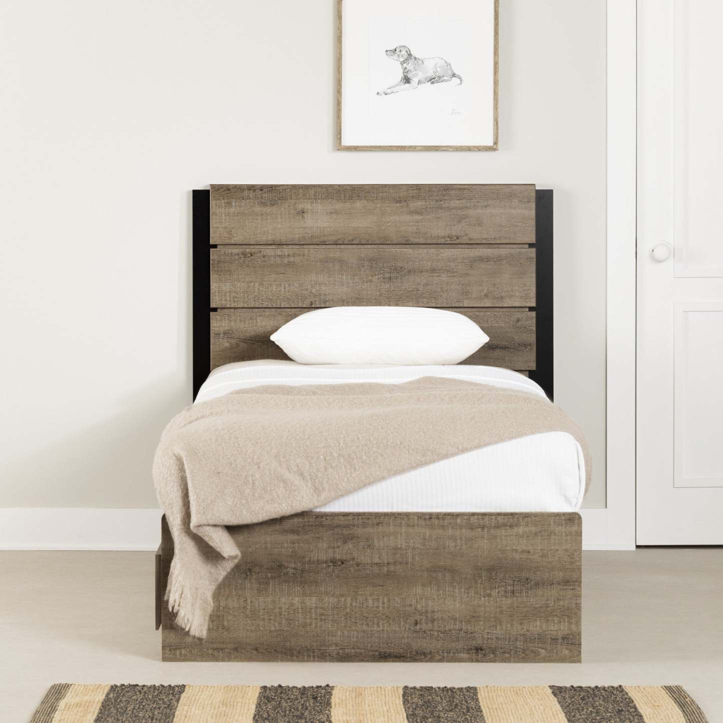 Ensemble lit Arlen Matelot avec 3 tiroirs et tête de lit - Chêne vieilli | Arlen Ensemble lit Matelot 3 Tiroirs et Tête de lit - Chêne vieilli