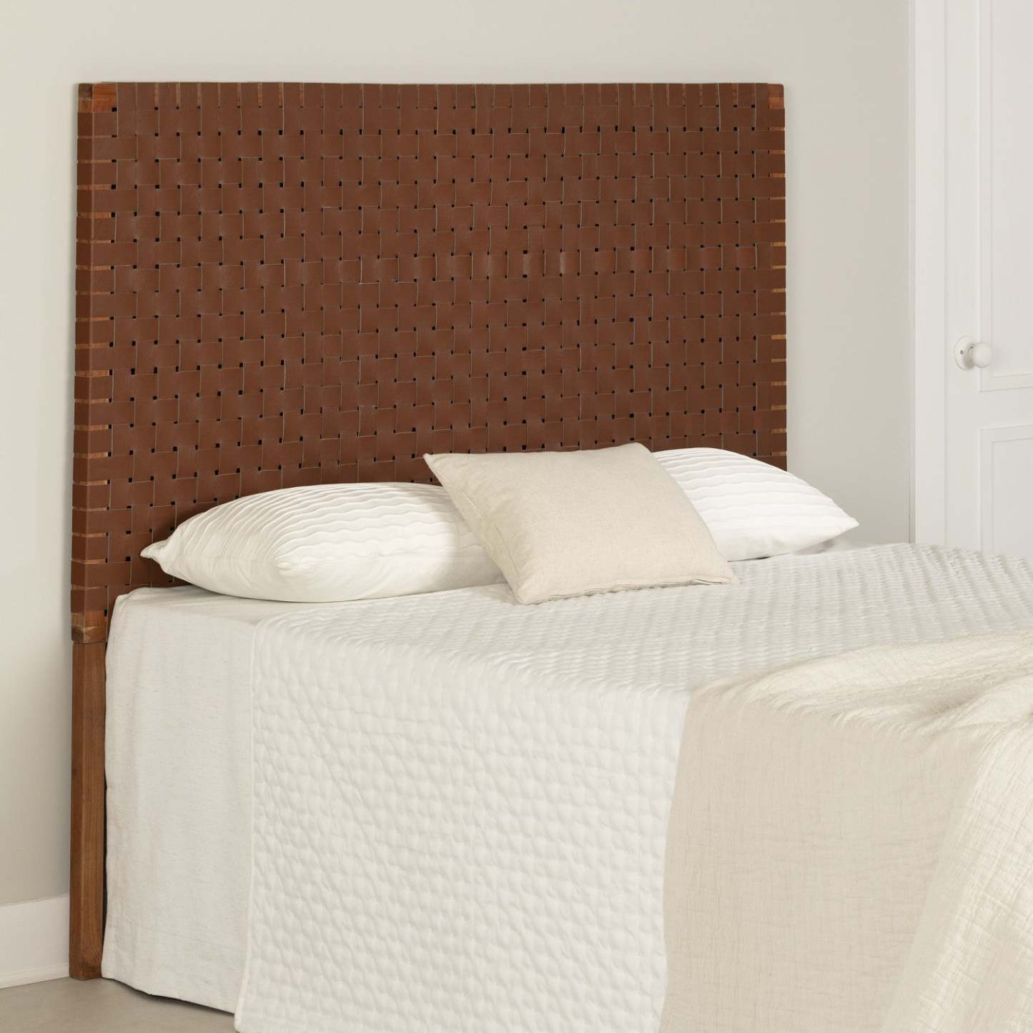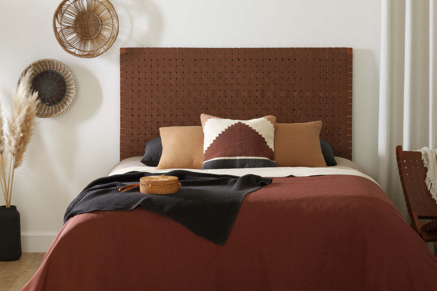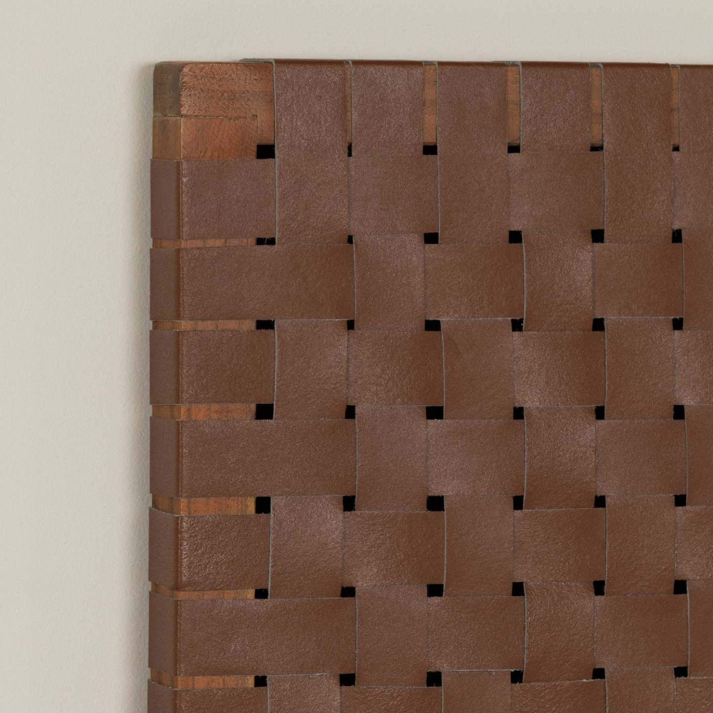 Sublimez la décoration de votre chambre en un clin d'œil grâce à cette fabuleuse tête de lit en cuir tressé ! Son style bohème chic apportera à votre chambre une ambiance lounge ultra-sophistiquée. Confort et détente absolus ! Cette tête de lit de qualité supérieure est fabriquée en bois d'acacia et en cuir tressé. Autre atout : chaque tête de lit est faite à la main, ce qui en fait une pièce unique, confectionnée avec soin et passion. Fabriquée en bois véritable, elle peut présenter de légères variations de couleur ou des imperfections naturelles, qui font partie intégrante de son charme. Fixer cette tête de lit au mur est un jeu d'enfant : il suffit de la poser contre le mur. Si vous êtes bricoleur et prêt à y consacrer du temps et des efforts, vous pouvez également la fixer au mur ou à votre sommier. Dans ce cas, vous devrez percer des trous et vous munir de la visserie nécessaire.
