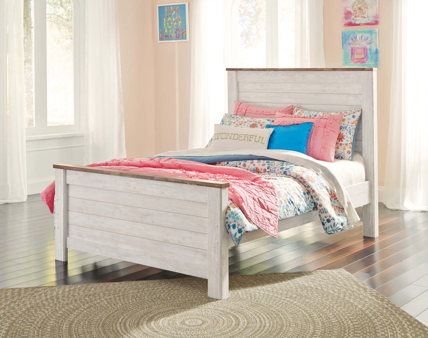 Lit à panneaux Willowton avec tête de lit et cadre, blanchi à la chaux - Pleine grandeur | Lit à panneau Willowton avec tête de lit et cadre de lit, blanc - format lit double