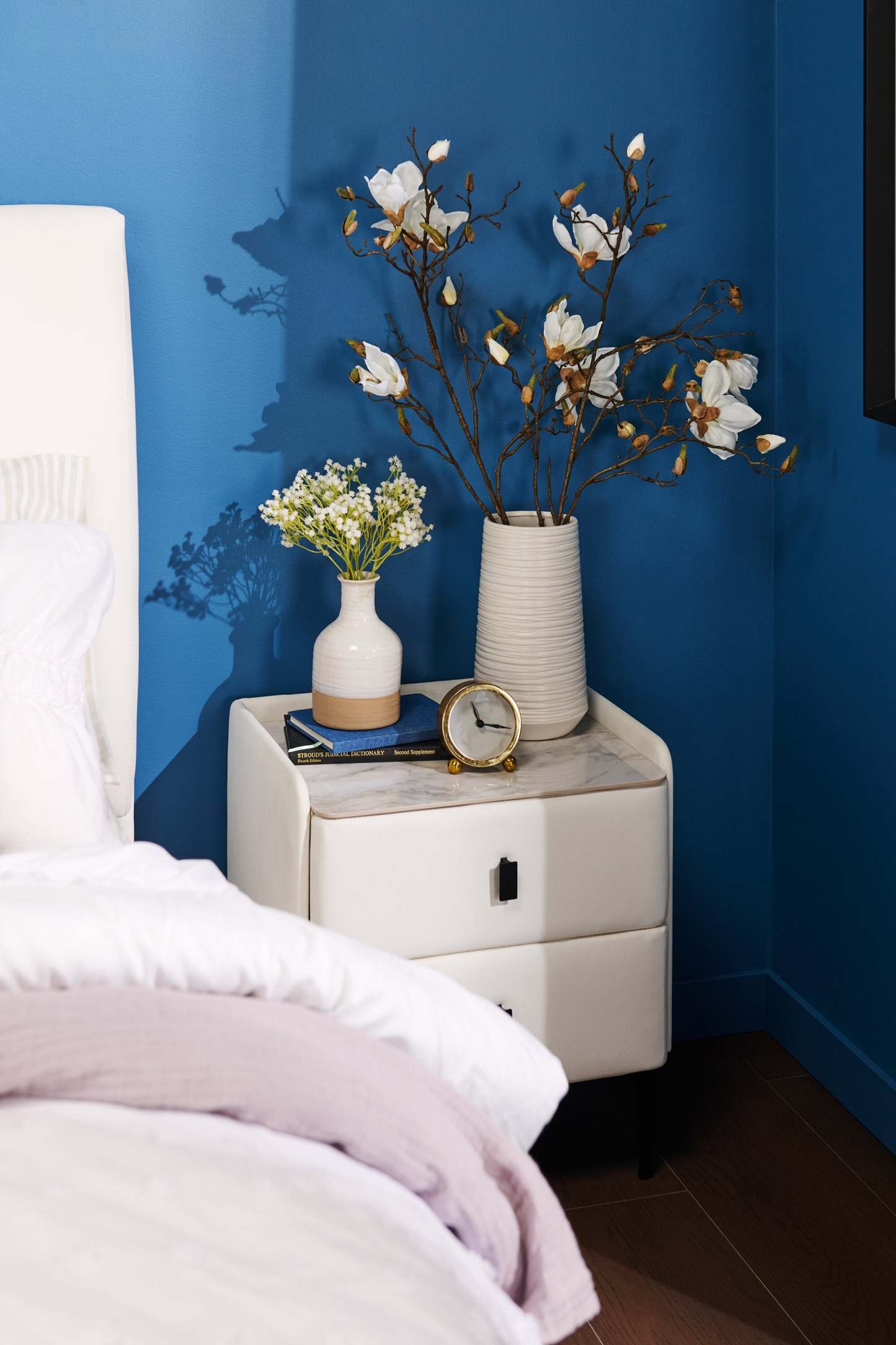 Conçue pour les amoureux des petits luxes, la table de chevet Nova ne vous décevra pas. Son design discret n'en est pas moins audacieux. Revêtue d'un superbe similicuir blanc et ornée de poignées et de pieds noirs, elle s'intègre avec élégance dans tous les intérieurs. Son plateau en pierre frittée et ses deux tiroirs spacieux vous permettent de garder vos essentiels de nuit à portée de main, rangés avec style. Associez-la au lit Nova assorti (vendu séparément), disponible en format queen ou king, et créez votre propre havre de paix et de luxe raffiné.