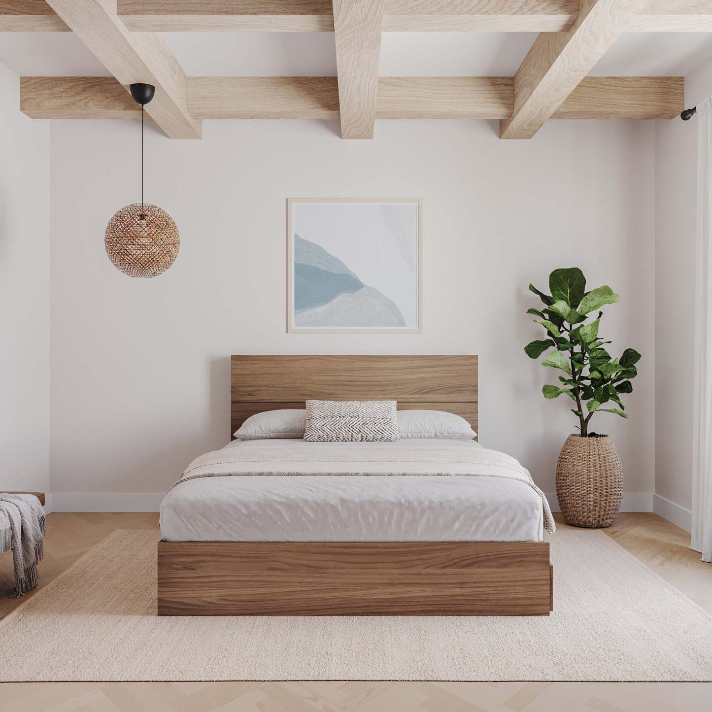 Tête de lit à panneau complet Nordika - Noyer | Tête de lit à panneaux Nordika pour lit double - noyer | D08HKSYQ