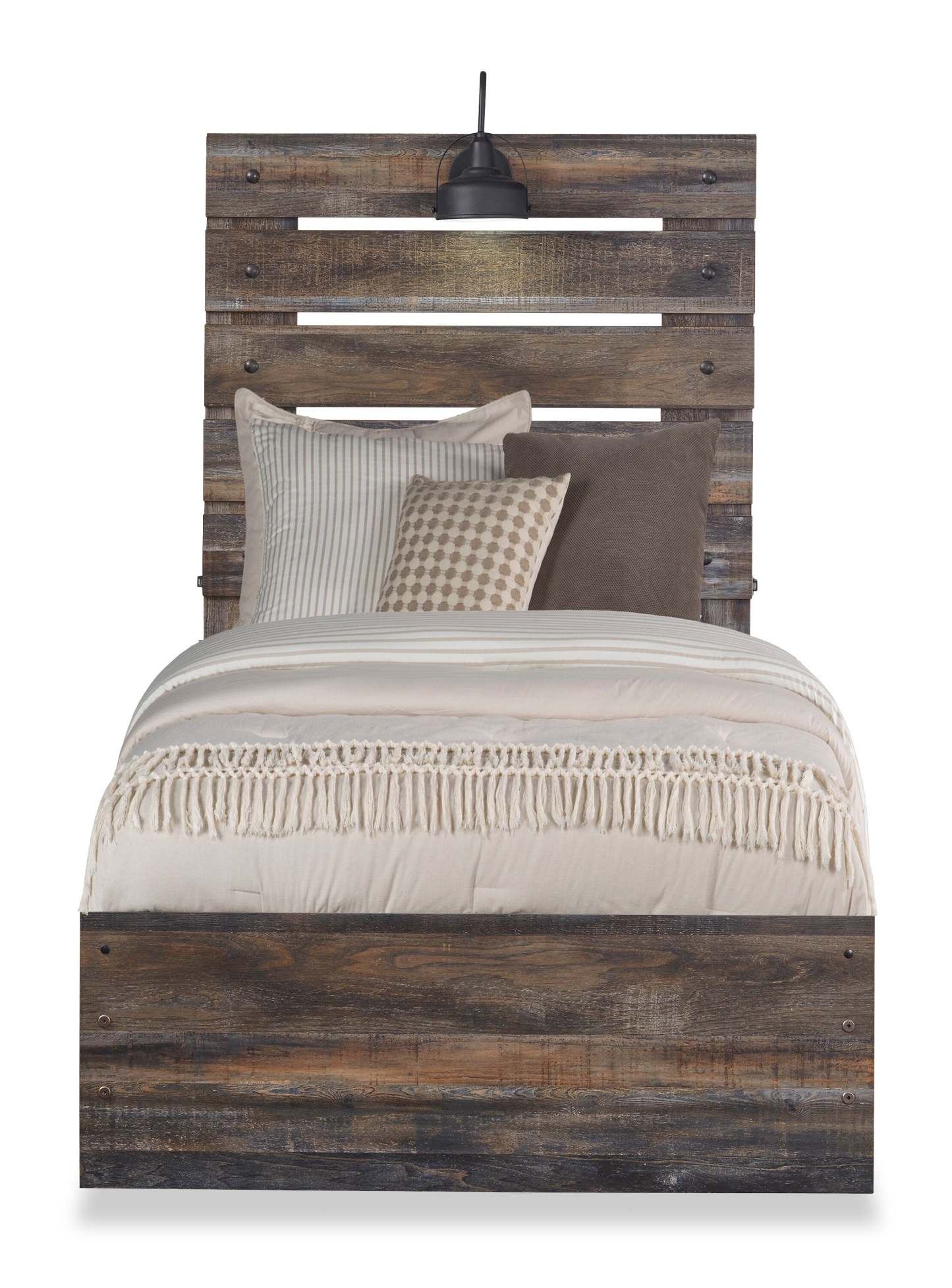 Lit à panneaux Abby avec tête de lit et cadre pour enfants, LED, USB, marron - Taille simple | Lit à panneau Abby pour enfants avec tête de lit, cadre de lit, éclairage à DEL et port USB, brun - …