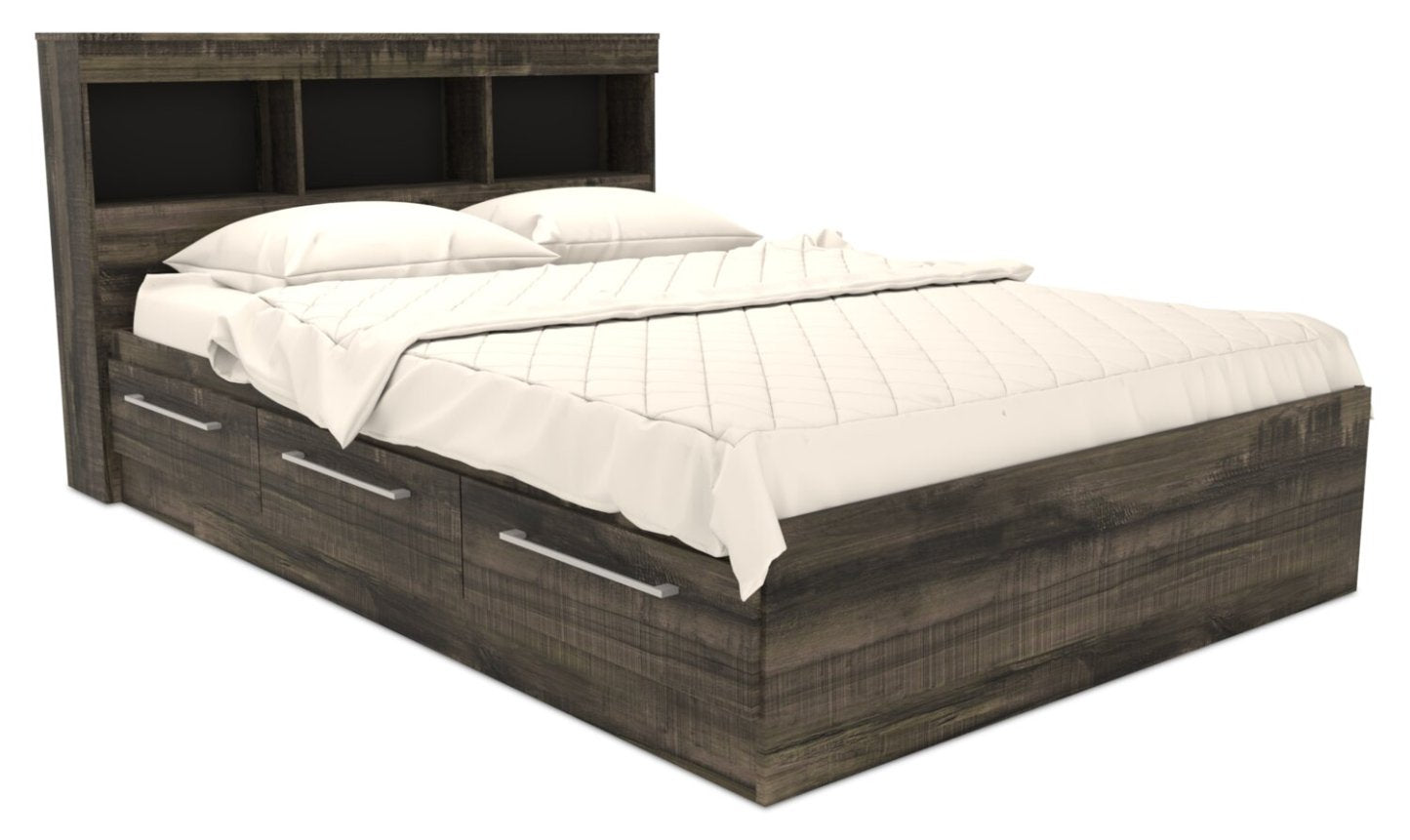 Ensemble de lit Riley Mates avec tête de lit bibliothèque pour enfants, fabriqué au Canada, gris - Pleine grandeur | Lit matelot Riley avec ensemble de tête de lit bibliothèque pour enfants, fabriqué au Canada, gris - format lit double