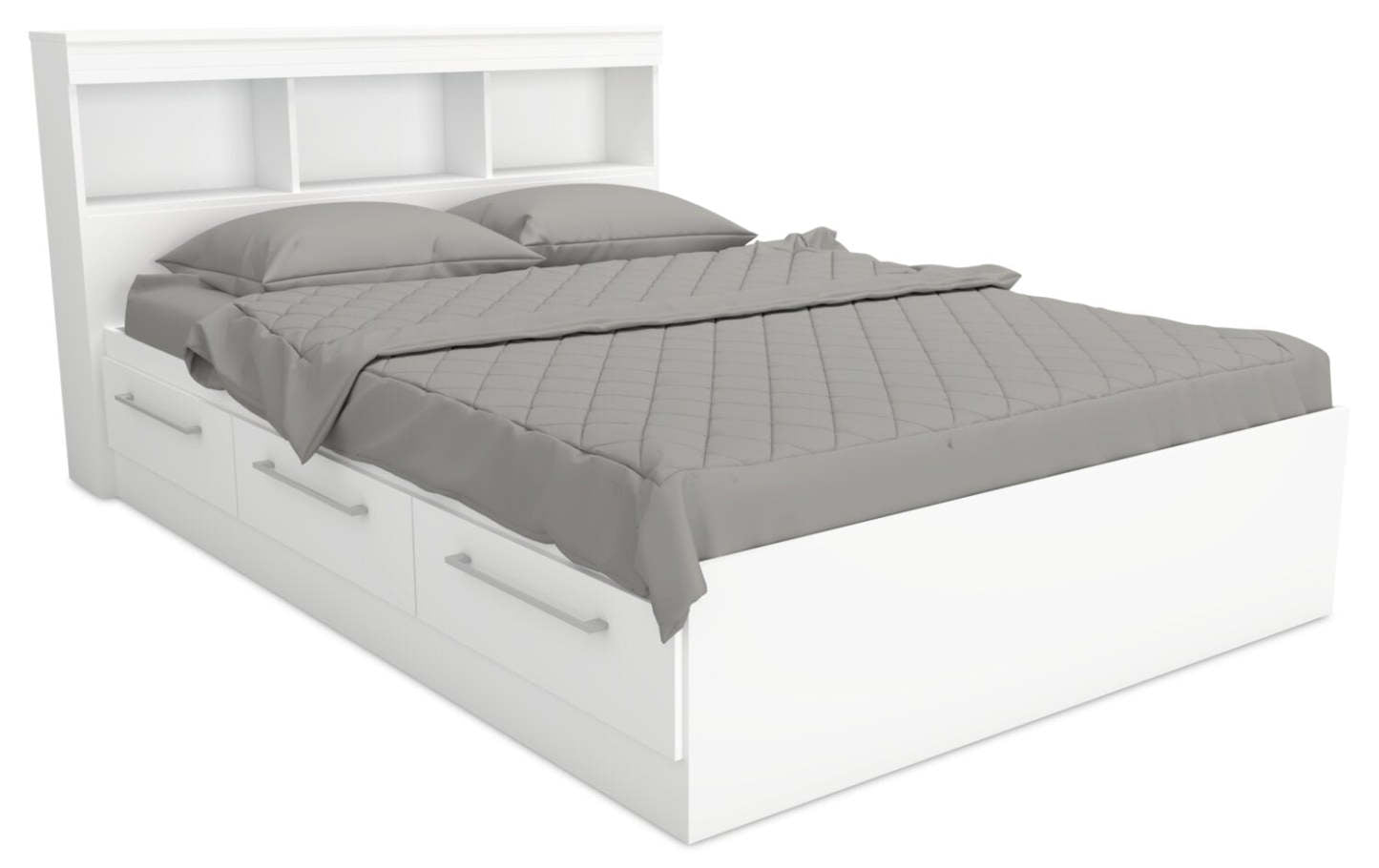 Ensemble de lit Riley Mates avec tête de lit bibliothèque pour enfants, fabriqué au Canada, blanc - pleine grandeur | Lit matelot Riley avec ensemble de tête de lit bibliothèque pour enfants, fabriqué au Canada, blanc - format lit double