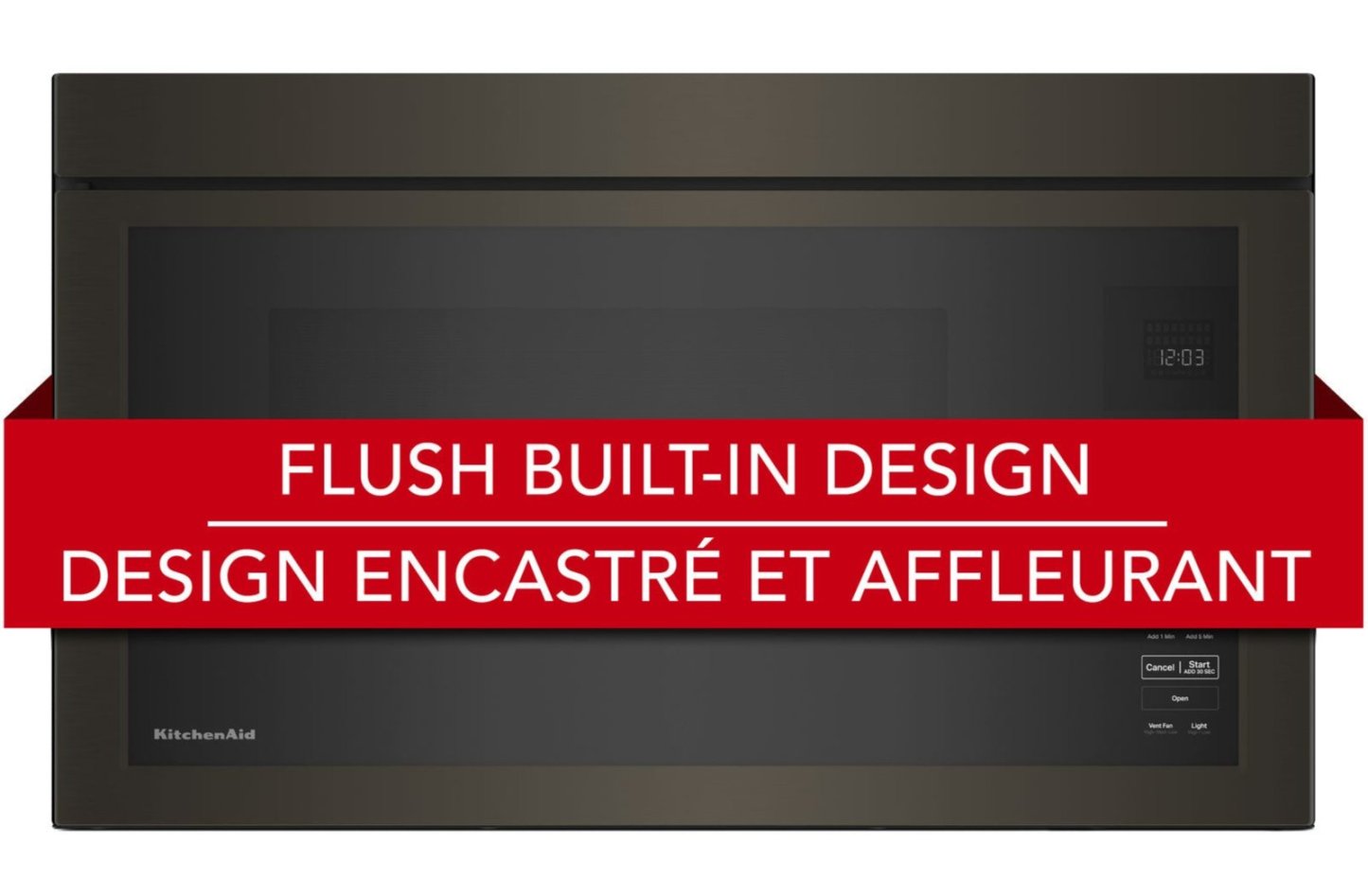 Four à micro-ondes à hotte intégrée KitchenAid de 1,1 pi³ à installation affleurée avec cuisson à 900 Watts - Acier inoxydable noir - YKM… | KitchenAid 1.1 Cu. Ft. Flush Over-the-Range Microwave with 900 Watts Cooking - Black Stainless - YKM…