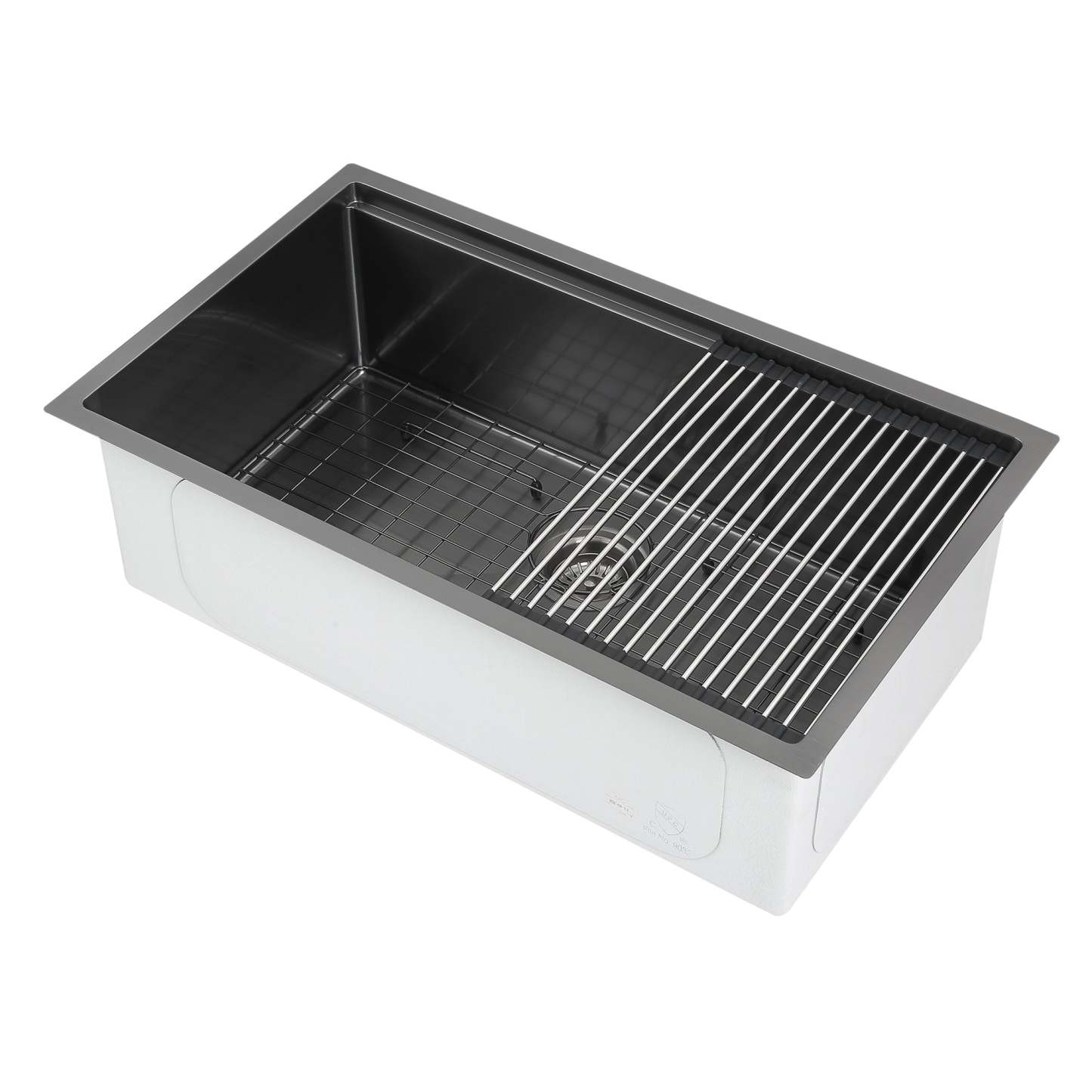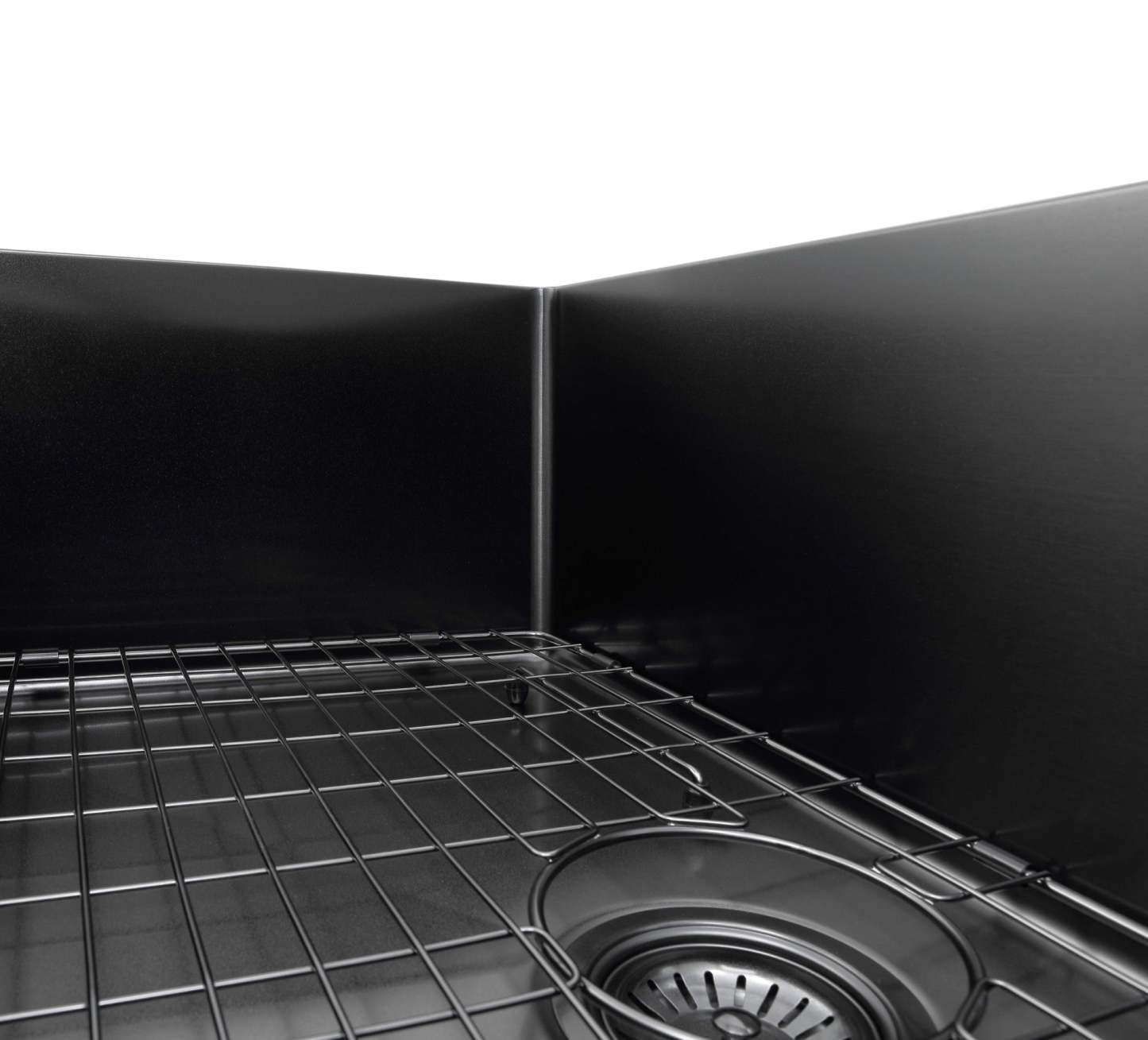 Fabriqué artisanalement en acier inoxydable de calibre 18, cet évier encastré est doté de la technologie PVD Nano, résistante aux rayures, aux taches et aux bactéries. Sa cuve profonde de 25 cm offre un espace généreux pour les ustensiles de cuisine de grande taille, et sa grille sur mesure préservera l'aspect impeccable de votre évier. Le tapis d'égouttage enroulable en acier inoxydable vous simplifiera la vie au quotidien.