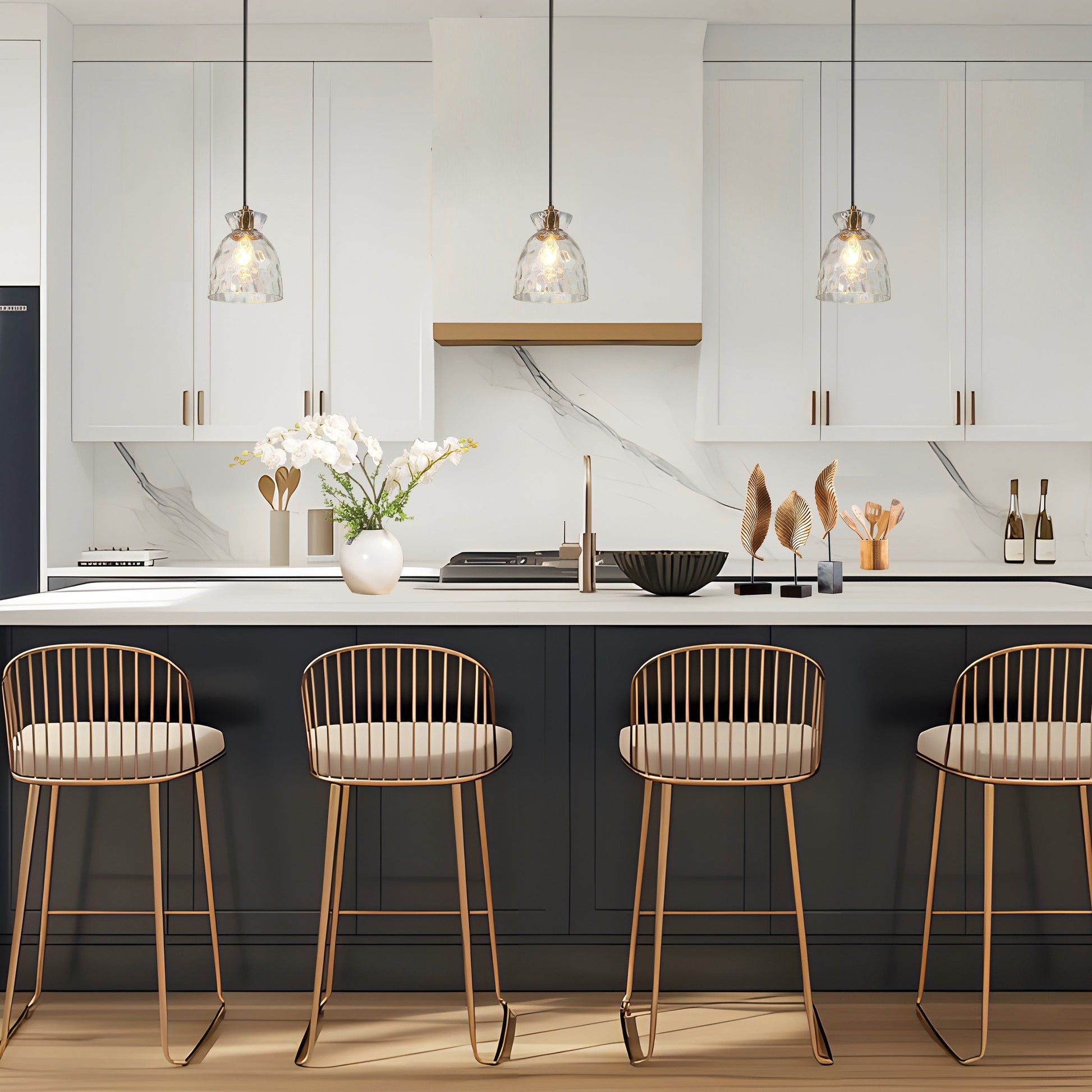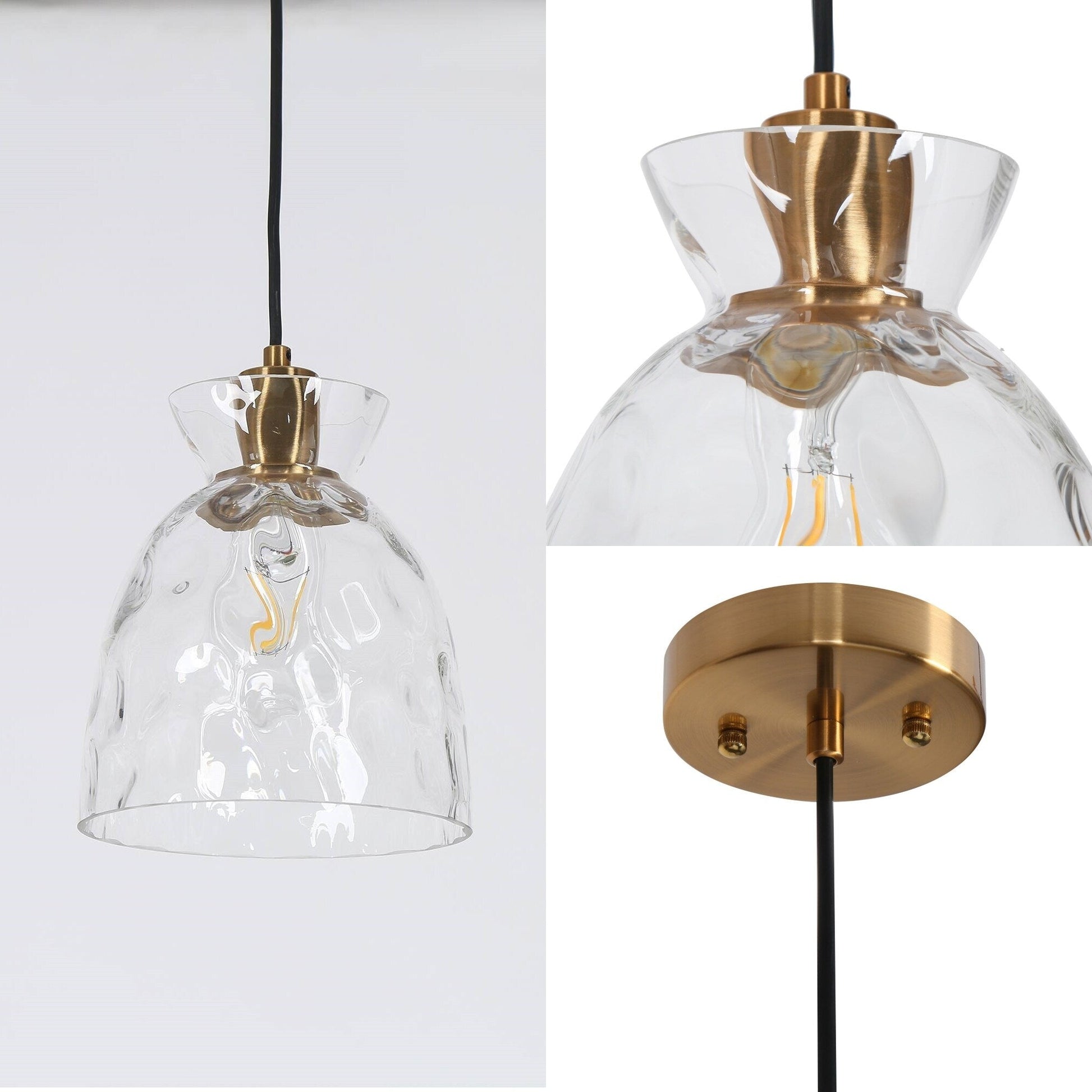 Suspension Elisie style moderne du milieu du siècle, 1 lumière, dôme en verre martelé effet cascade, éclairage pour îlot de cuisine ou salle à manger