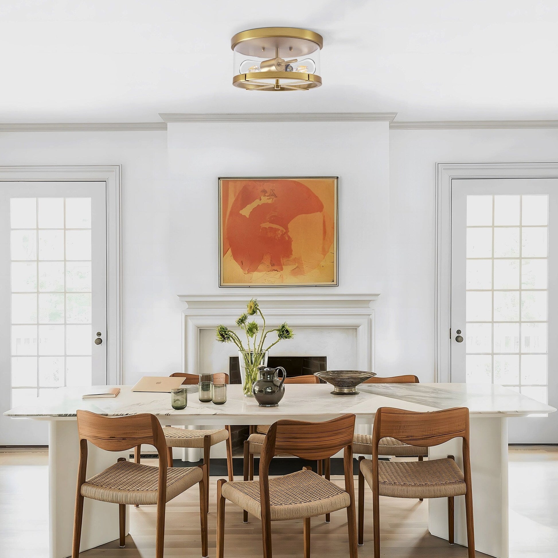Plafonnier encastré à 2 lumières en verre transparent...