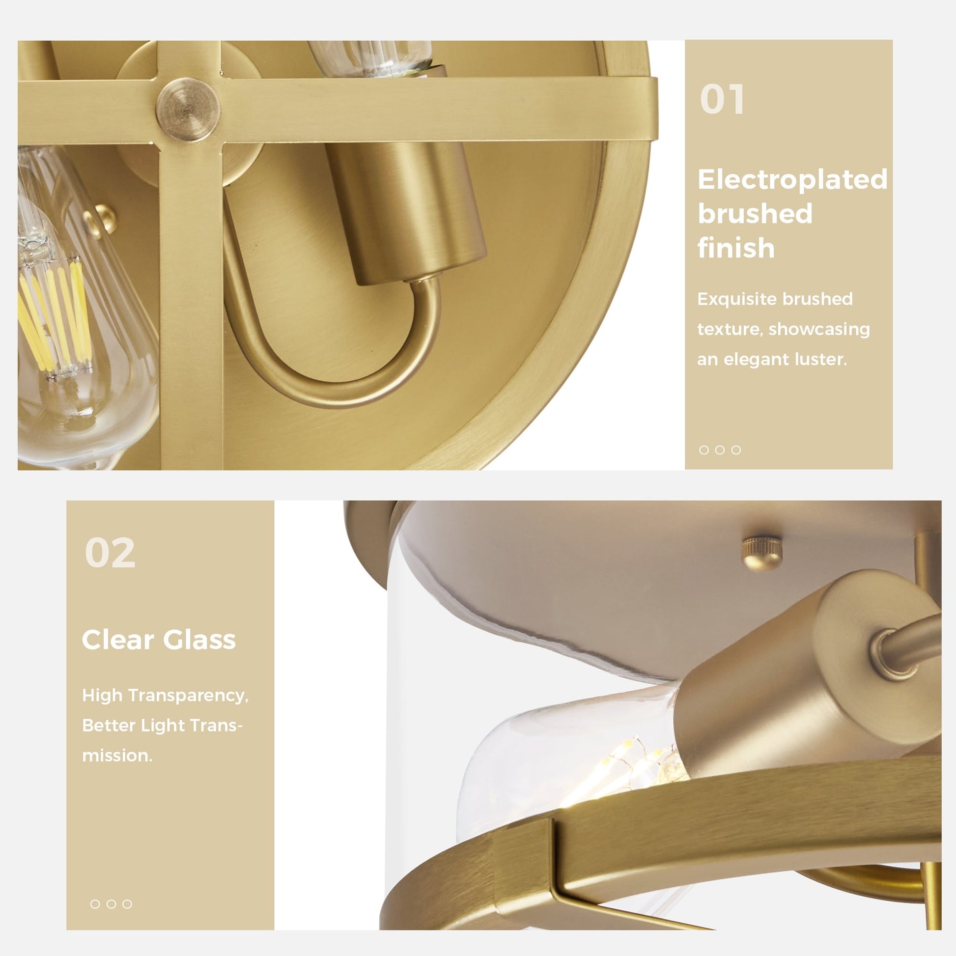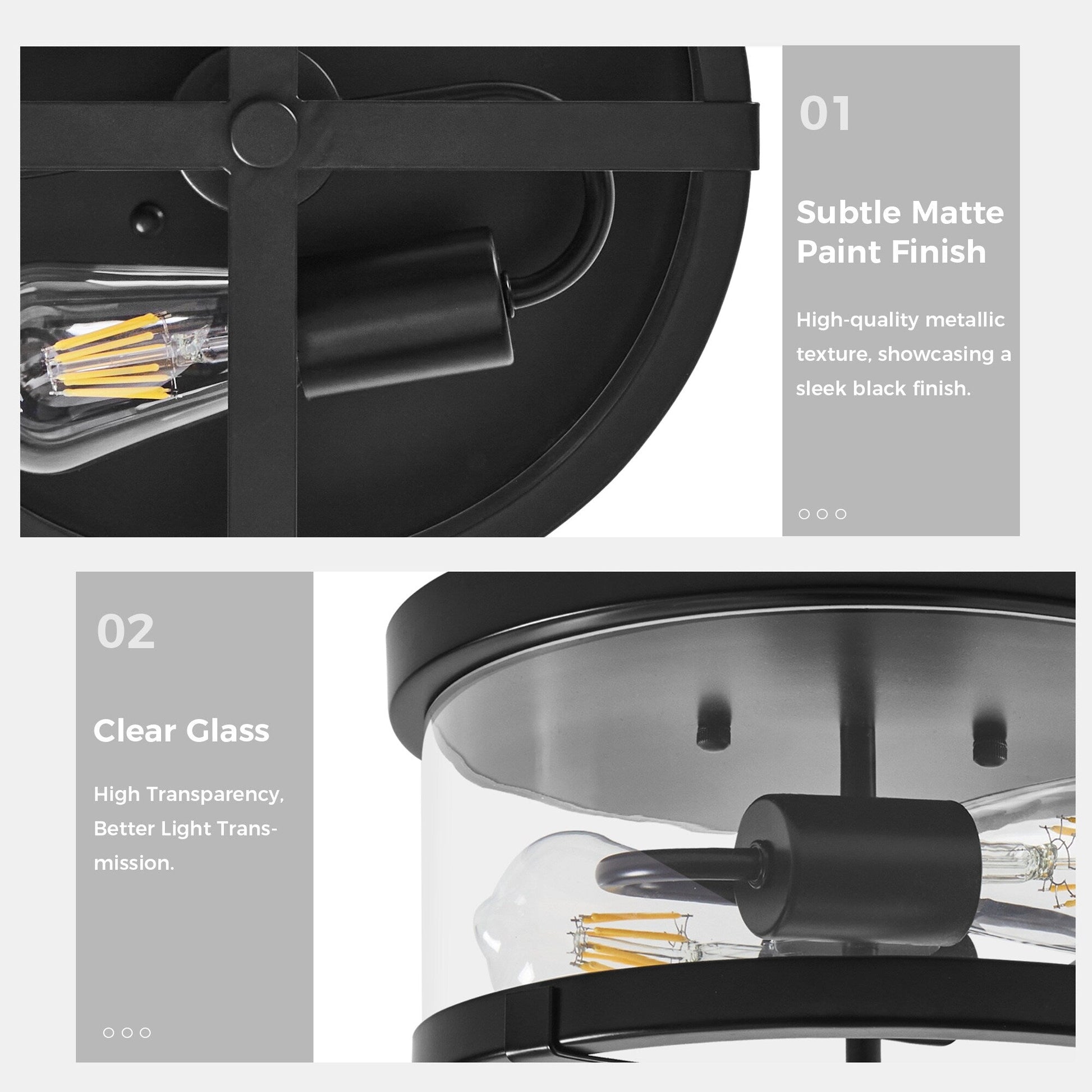 • Conception avec un abat-jour en verre transparent sur le côté et une structure métallique ouverte en bas pour un éclairage doux et confortable.