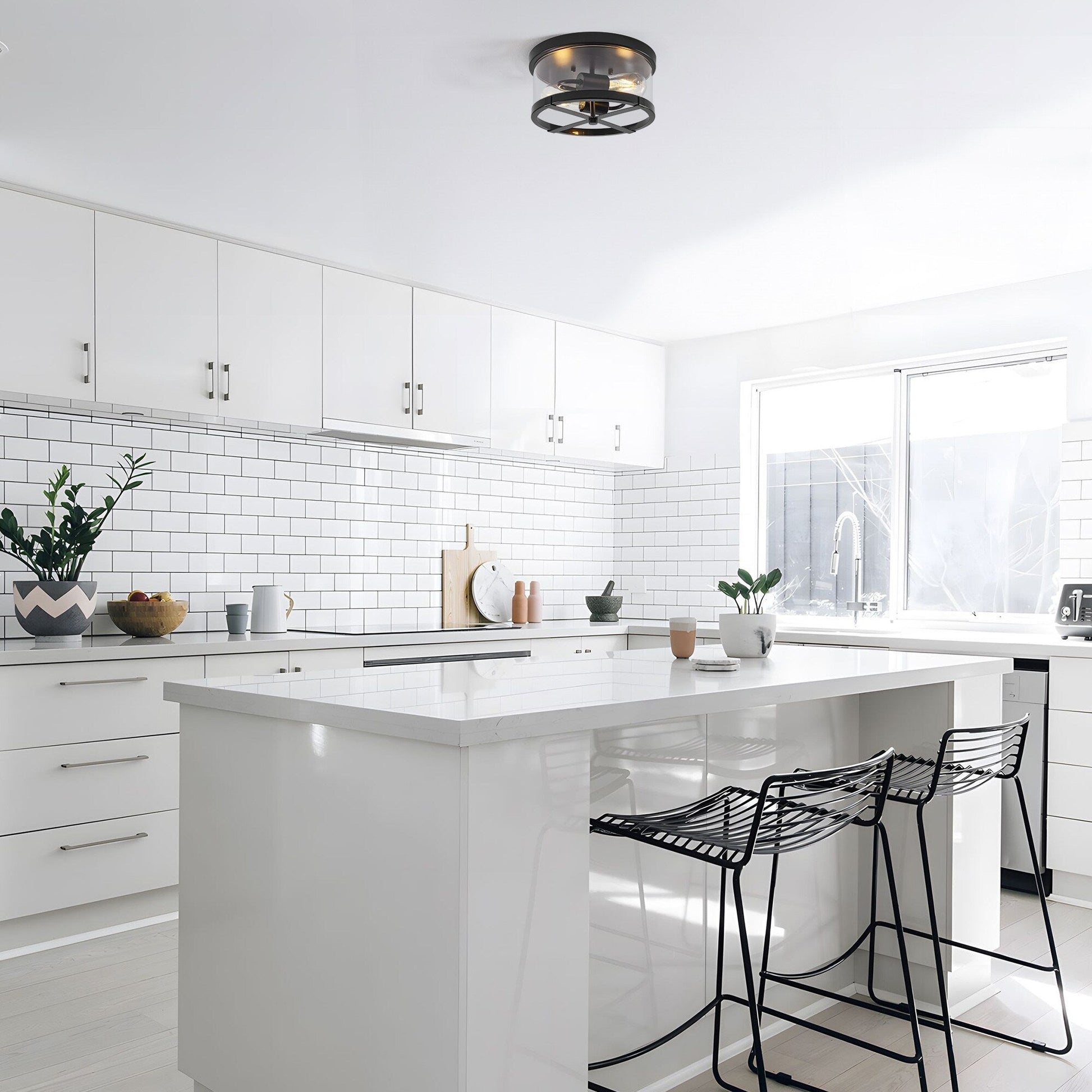 Plafonnier encastré à 2 lumières en verre transparent avec cadre en métal