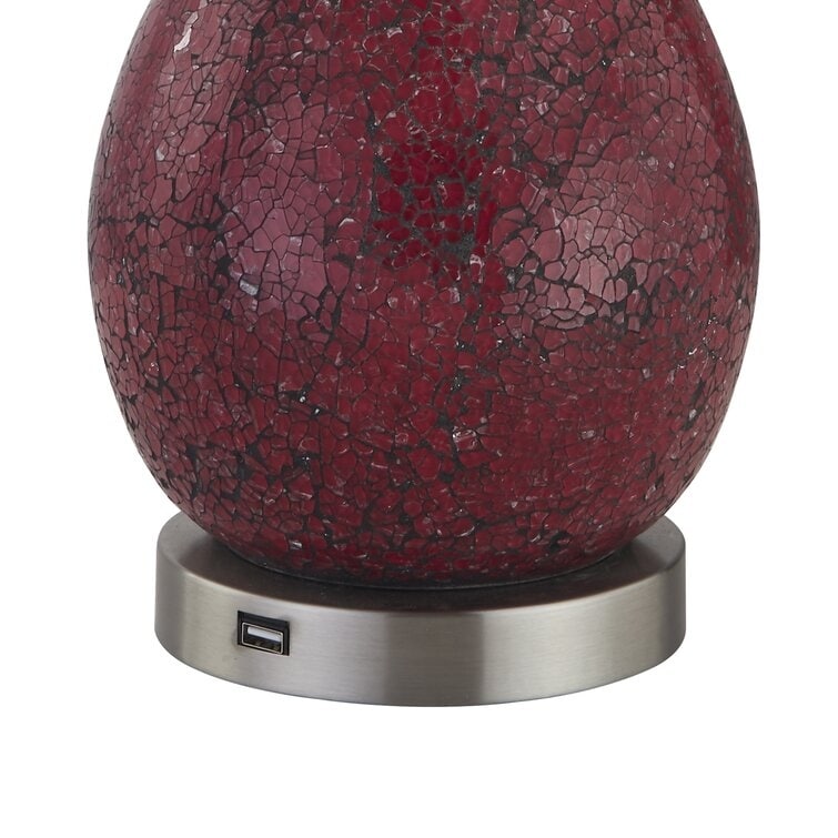 Ce lot de deux lampes de chevet illuminera votre chambre d'une touche bohème et texturée. Leur forme en goutte d'eau et leur effet craquelé unique évoquent le verre mercurisé. Les bases circulaires en métal intègrent des ports USB, parfaits pour recharger votre téléphone ou votre tablette pendant que vous lisez ou regardez la télévision. L'abat-jour cylindrique épuré et le fleuron décoratif subliment le corps de la lampe. Chaque lampe fonctionne avec une ampoule standard (non fournie).