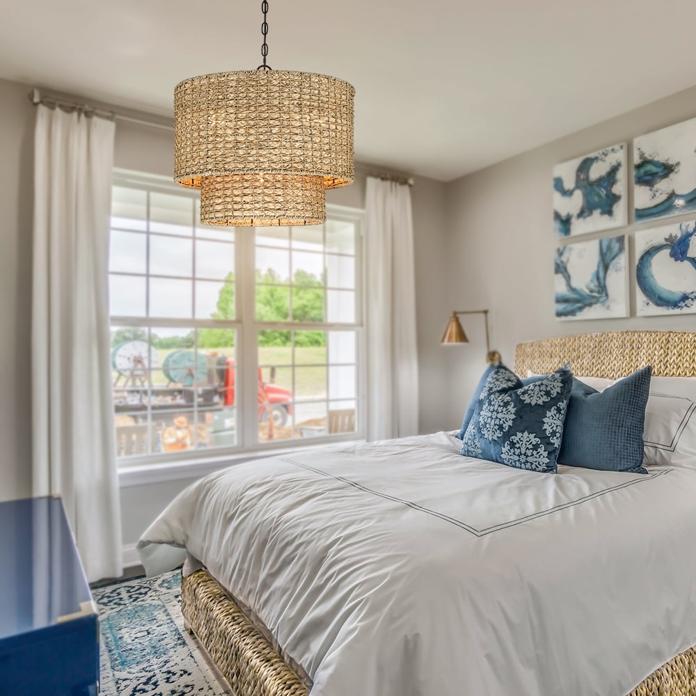 Rien n'apporte autant de chaleur et d'ambiance décontractée qu'un lustre tressé. Cette suspension est méticuleusement tressée à la main en jonc de mer naturel et en rotin, dans une silhouette cylindrique surdimensionnée. À l'intérieur, un ensemble de quatre ampoules noir mat diffuse une lumière généreuse et crée d'intéressants jeux d'ombres sur les murs de votre entrée, salle à manger ou chambre. Cette collection s'harmonise avec une variété de décors bohèmes et s'intègre même dans les intérieurs de style bord de mer ou champêtre. C'est le choix idéal au-dessus de votre îlot de cuisine, dans votre salon, votre hall d'entrée, ou encore suspendue au-dessus de votre table à manger ou de vos chambres.
