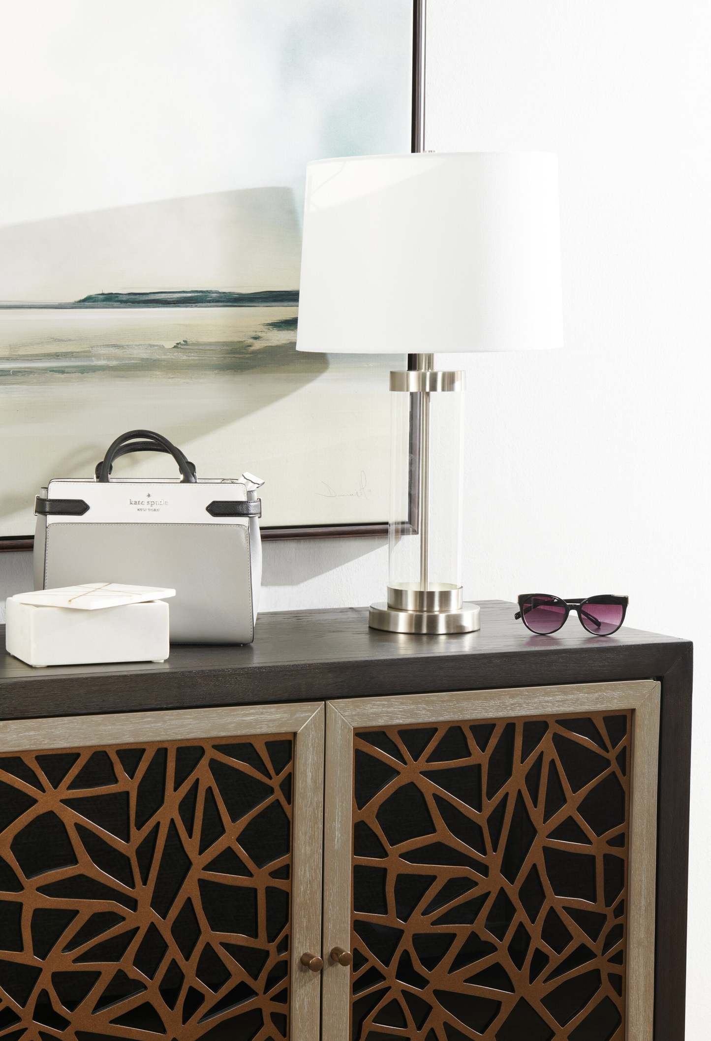 Donnez une nouvelle vie à votre décoration avec cette lampe de table classique mise à jour en acier brossé. L'Abella présente une silhouette cylindrique épurée, son corps est fabriqué en verre clair avec une tige mince intégrée pour une sensation d'ouverture et d'aération. Une finition métallique habille la base en métal, le tige et le col pour créer un contraste. Au-dessus, un abat-jour en tissu neutre complète le design. De plus, cette lampe de table est équipée de deux ports USB pour tous vos besoins de chargement.