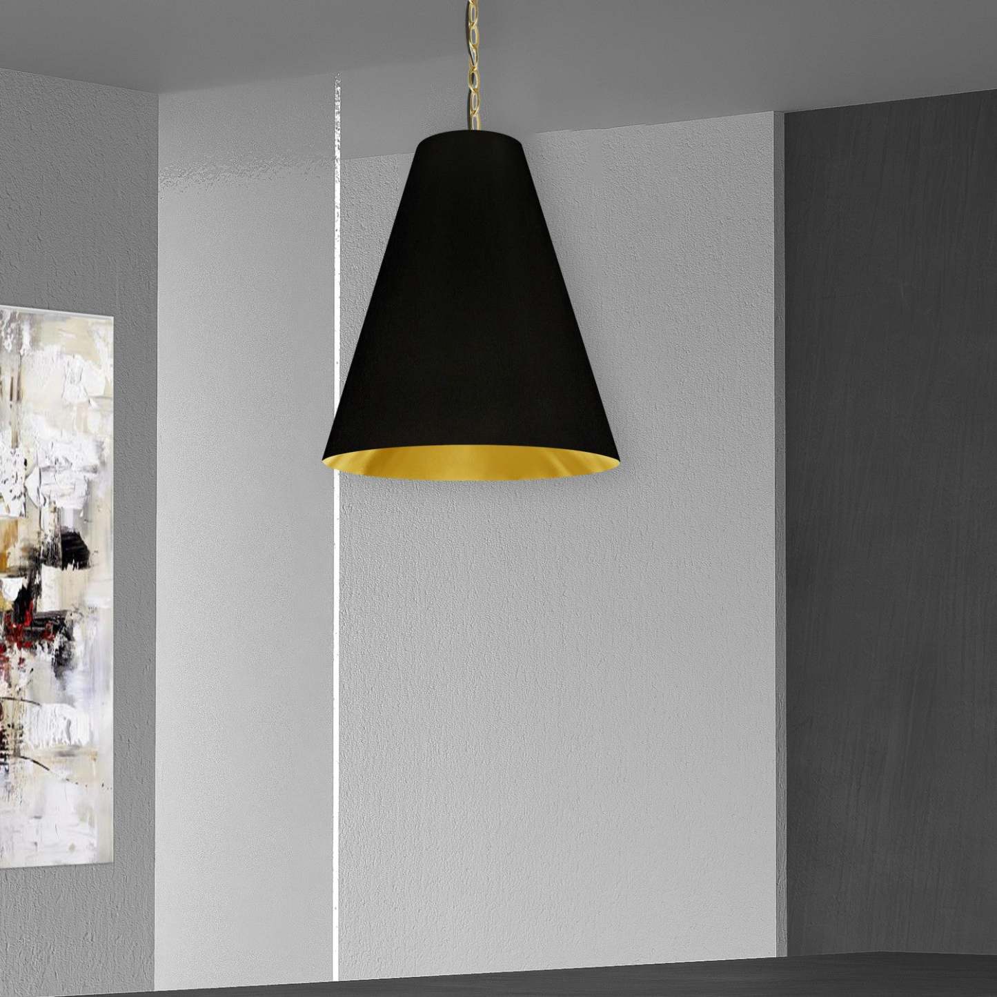 Dainolite Anaya 1 Light Pendant Medium Aged Brass Black/Gold Shade Lamp|Luminaire suspendu moyen Anaya de Dainolite avec abat-jour noir et doré, fini laiton vieilli et 1 ampoule