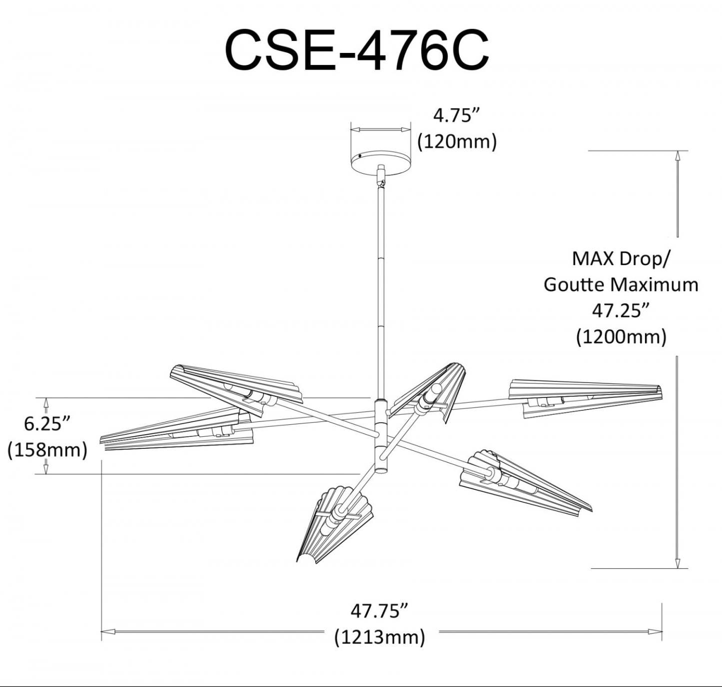 Lustre contemporain Cassie de Dainolite, en laiton vieilli électroplaqué, pour plafond, avec 6 ampoules, culot E12, 60 watts max., intensité variable, homologué UL pour les endroits humides, garantie limitée d'un an. Idéal pour la salle à manger, la cuisine, le salon et les espaces commerciaux. Caractéristiques : montage et installation faciles, hauteur réglable, adaptable aux plafonds inclinés.