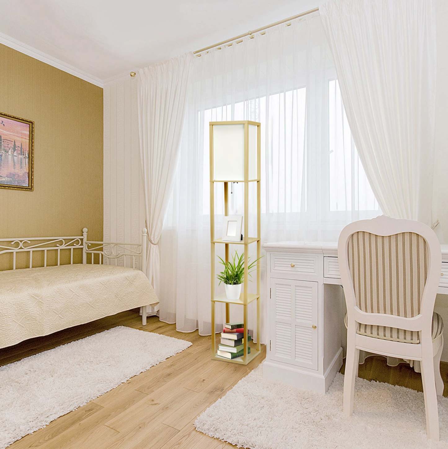 Éclairez votre espace de vie avec style grâce à notre lampe sur pied avec abat-jour en lin. Cette magnifique pièce ajoute de la polyvalence, car les étagères peuvent être utilisées pour afficher des photographies et d'autres souvenirs, tandis que l'abat-jour en lin diffuse une lumière douce et chaleureuse dans votre espace de vie. Cette lampe ajoute de la sophistication et du style à la décoration de n'importe quel foyer.