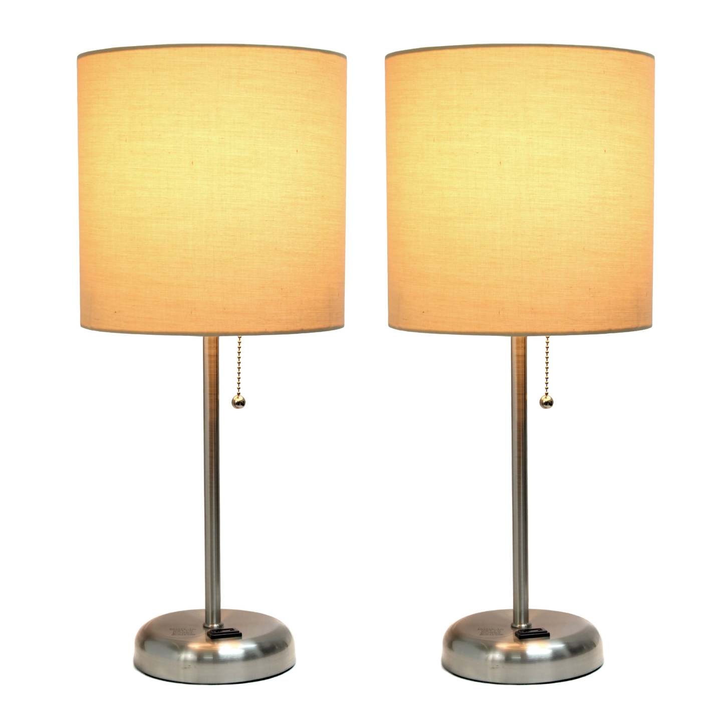 Limelights Ensemble de 2 lampes en acier brossé avec prise de recharge et abat-jour en tissu, ensemble de lampes beige|Ensemble 2 lampes Limelights brun clair avec pied mince acier brossé et prise de recharge|D2149GHE