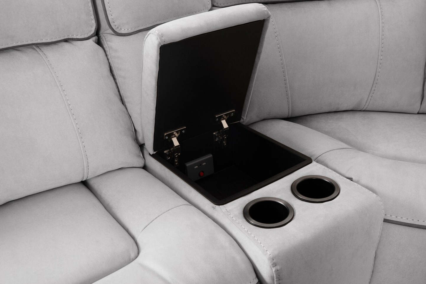 Cindy Crawford Home Newport 6-Piece Faux Suede Power Reclining Sectional with Armless Reclining Chair - Grey | Sofa sectionnel à inclinaison électrique Newport de Cindy Crawford Home 6 pièces en suédine avec fauteuil inclinable sans accoudoirs - gris