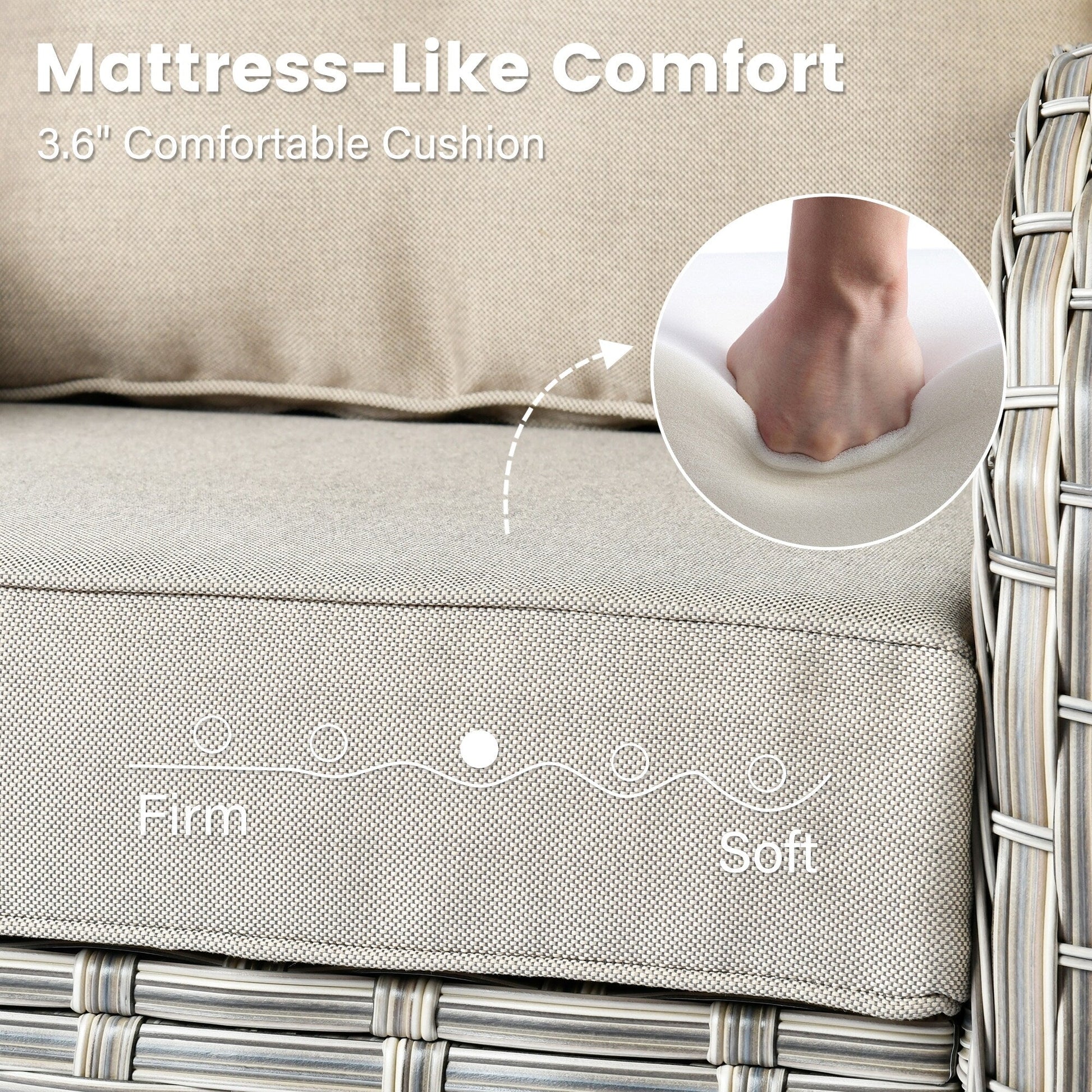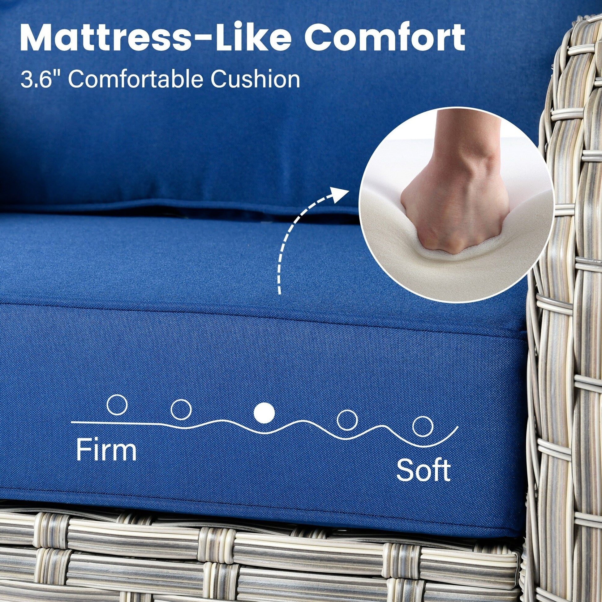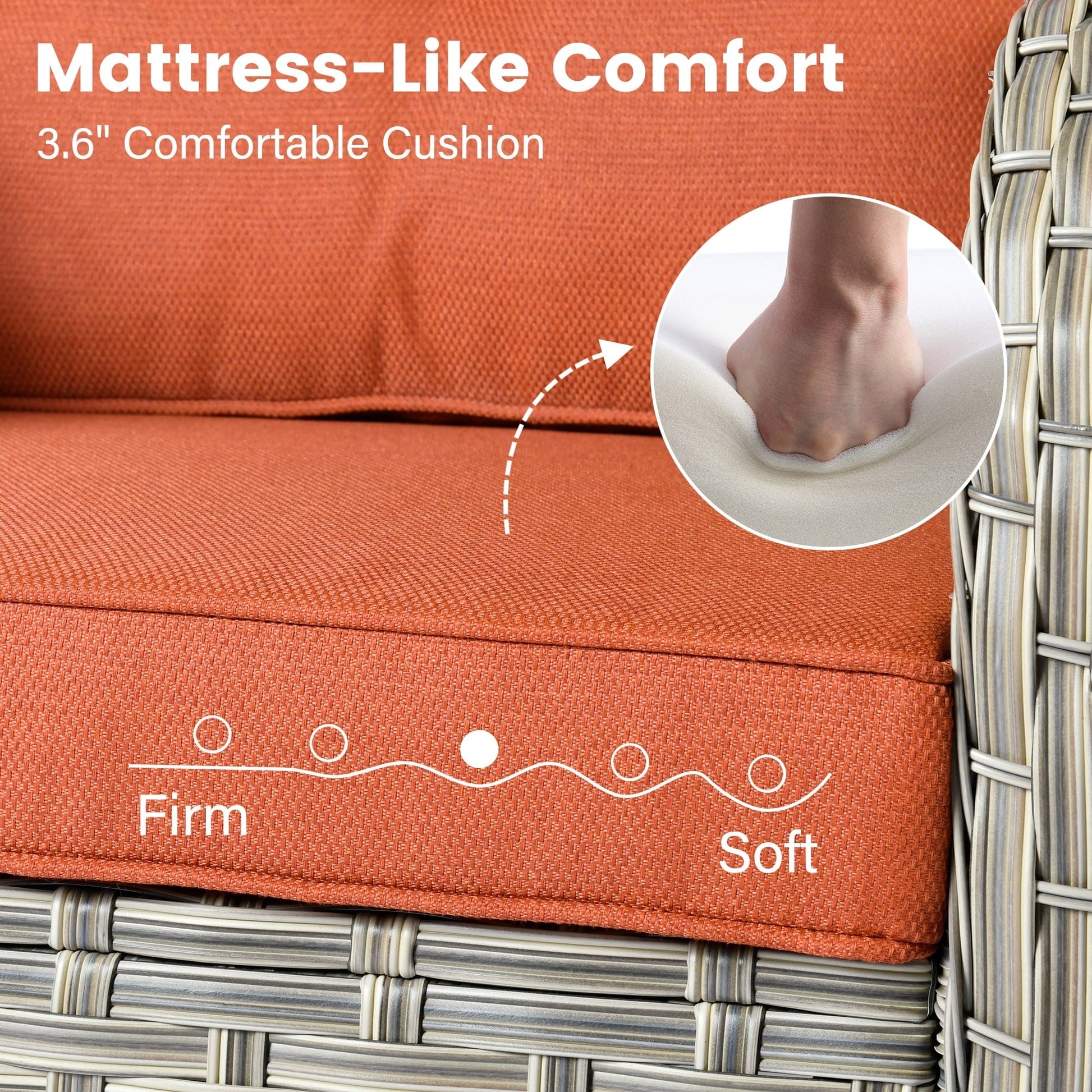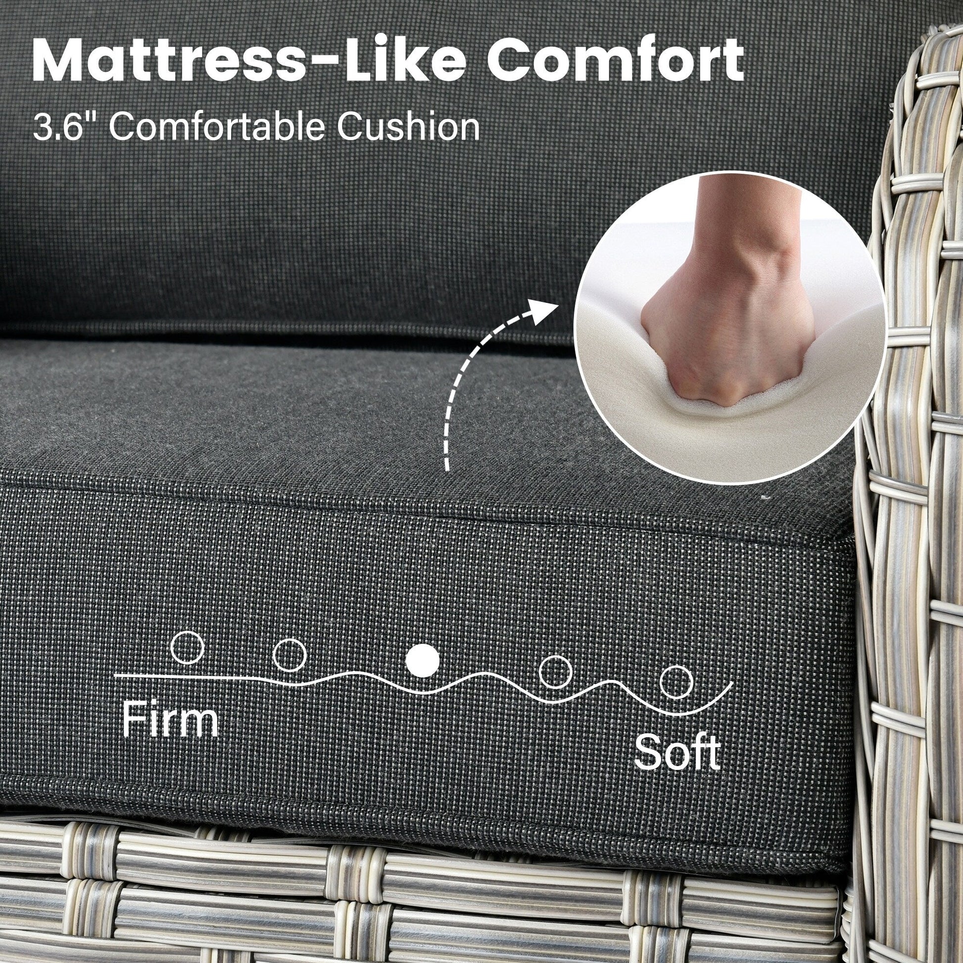 Sublimez votre espace extérieur avec cet ensemble de mobilier d'extérieur haut de gamme en osier, comprenant désormais un élégant foyer en métal, conçu pour allier style, confort et fonctionnalité. Idéal pour les réunions de famille, les fêtes en plein air ou pour se détendre en toute tranquillité, cet ensemble offrira le cadre idéal en toute occasion.